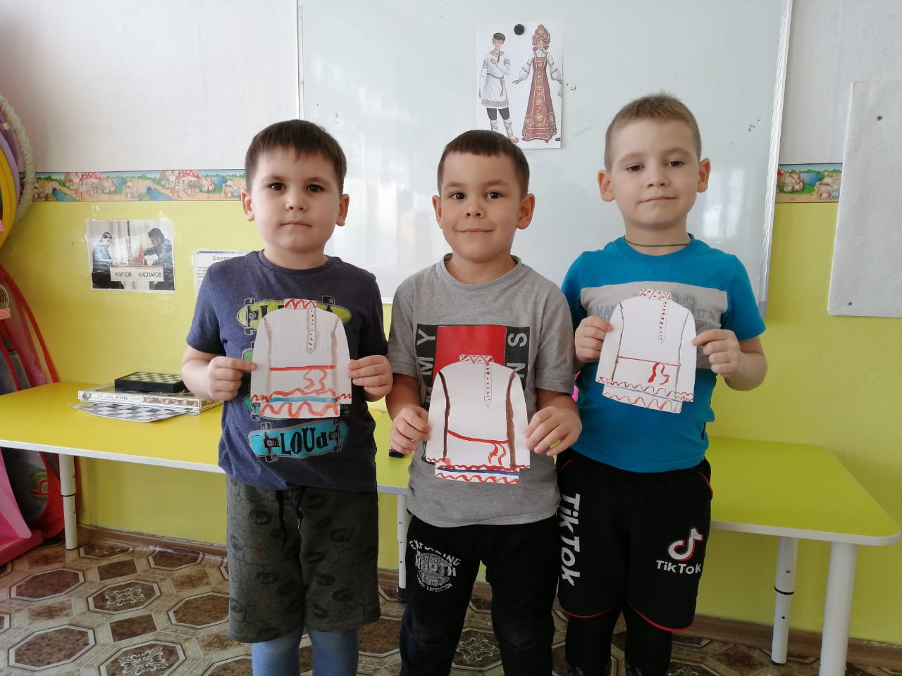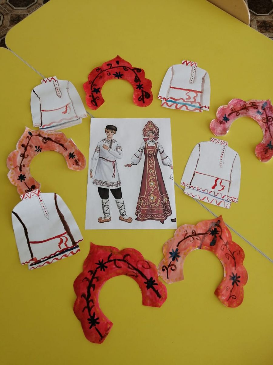 Цель: повторить элементы русского народного костюма и орнамента, развивать творчество детей.