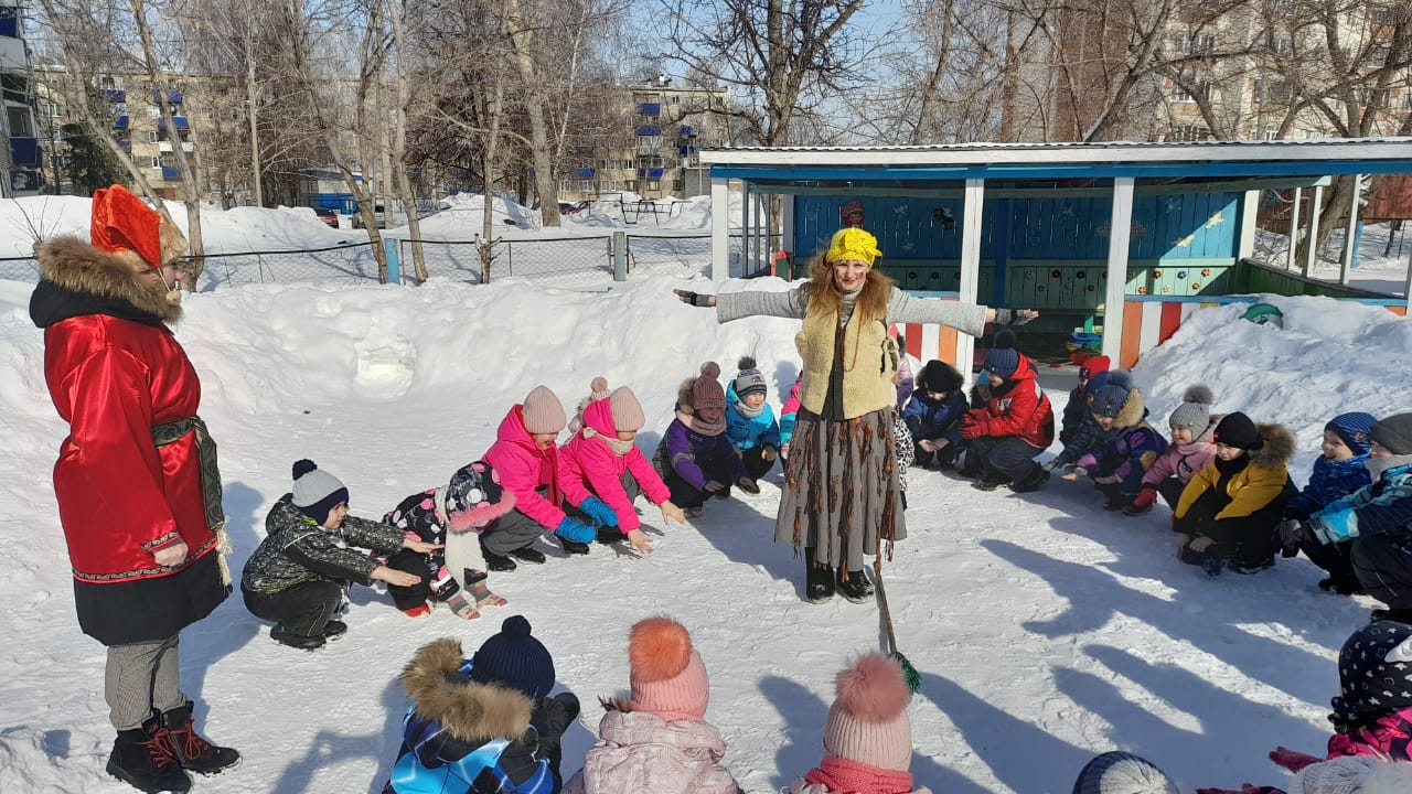 Как и положено на празднике, дети от души поиграли, спели песни, повеселились с Бабой Ягой (Деркач З. М.), и традиционно встретили Весну-Красну (Бадреева Э. И.), а также угостились вкусными блинами от самой Масленицы (Ефимова Е.Х.).