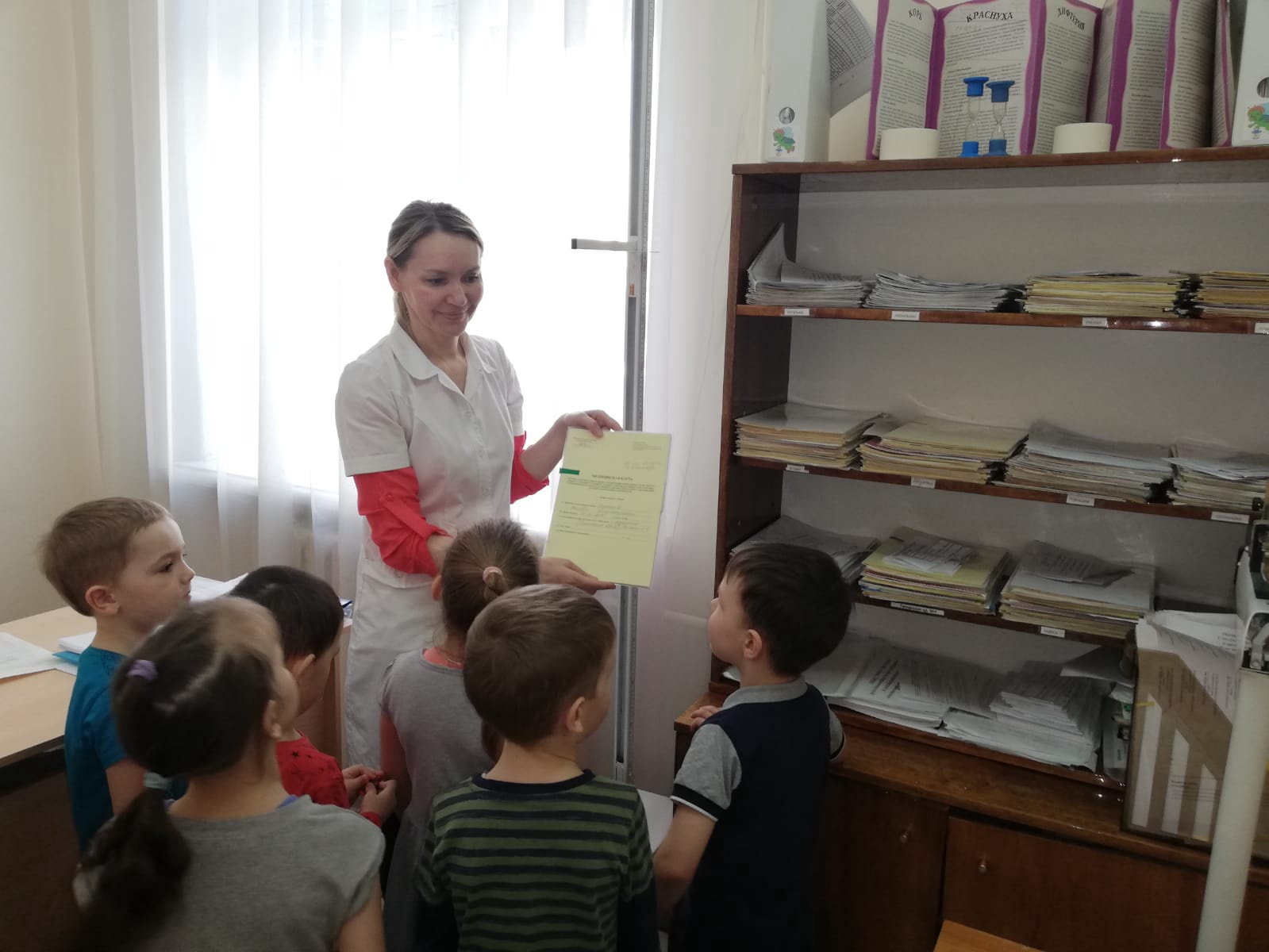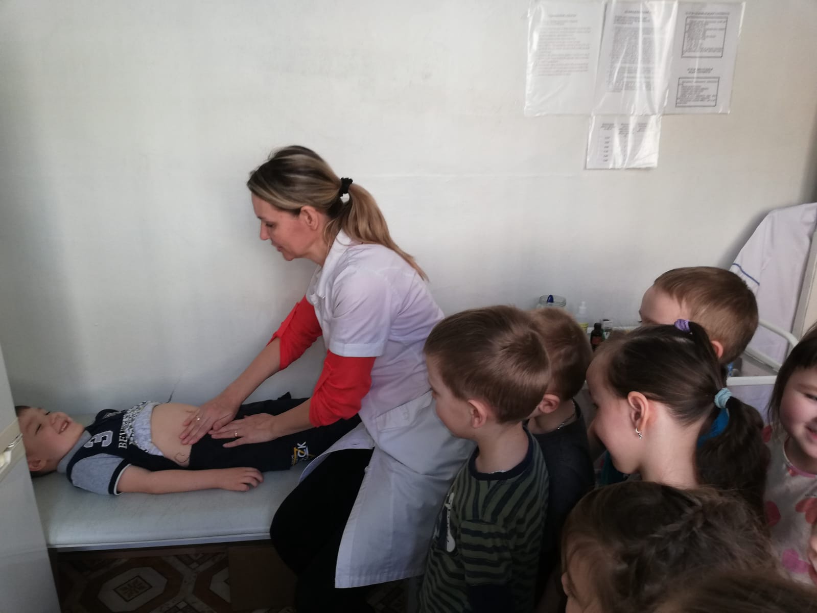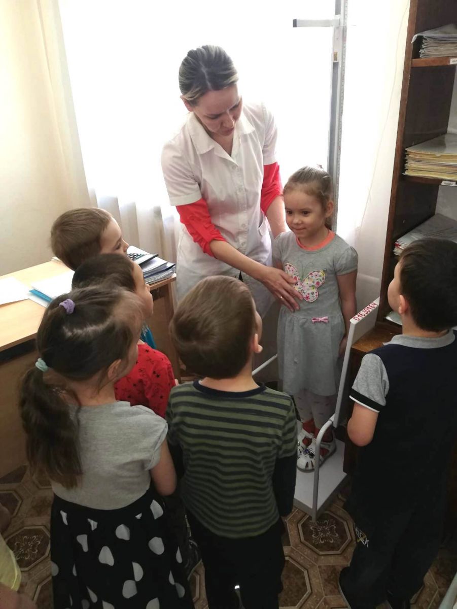 Объяснила почему нельзя трогать, играть с медицинскими инструментами, самостоятельно пить лекарства. Желающим измерила температуру, посмотрела горлышко, животик.