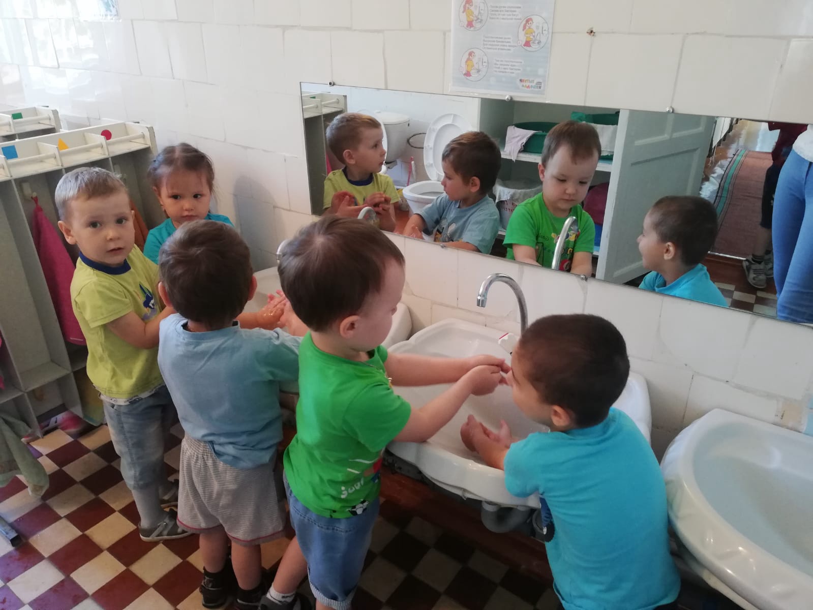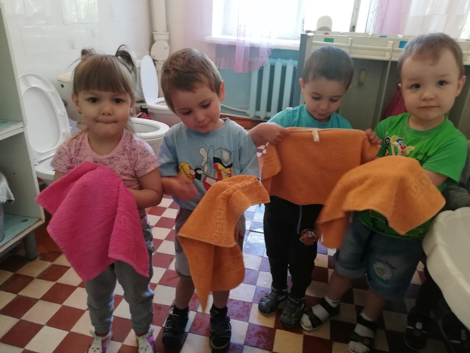 Необходимо знакомить детей с правилами личной гигиены. Ведь если их не соблюдать, то можно заболеть. Важно объяснить ребятам зачем это нужно делать. Поэтому перед едой, после занятий и прогулки мы с ребятами моем руки, умываемся. Затем дети вытирают руки каждый своим полотенцем.