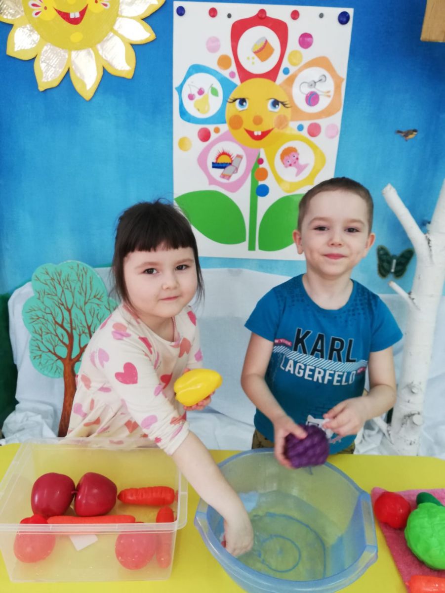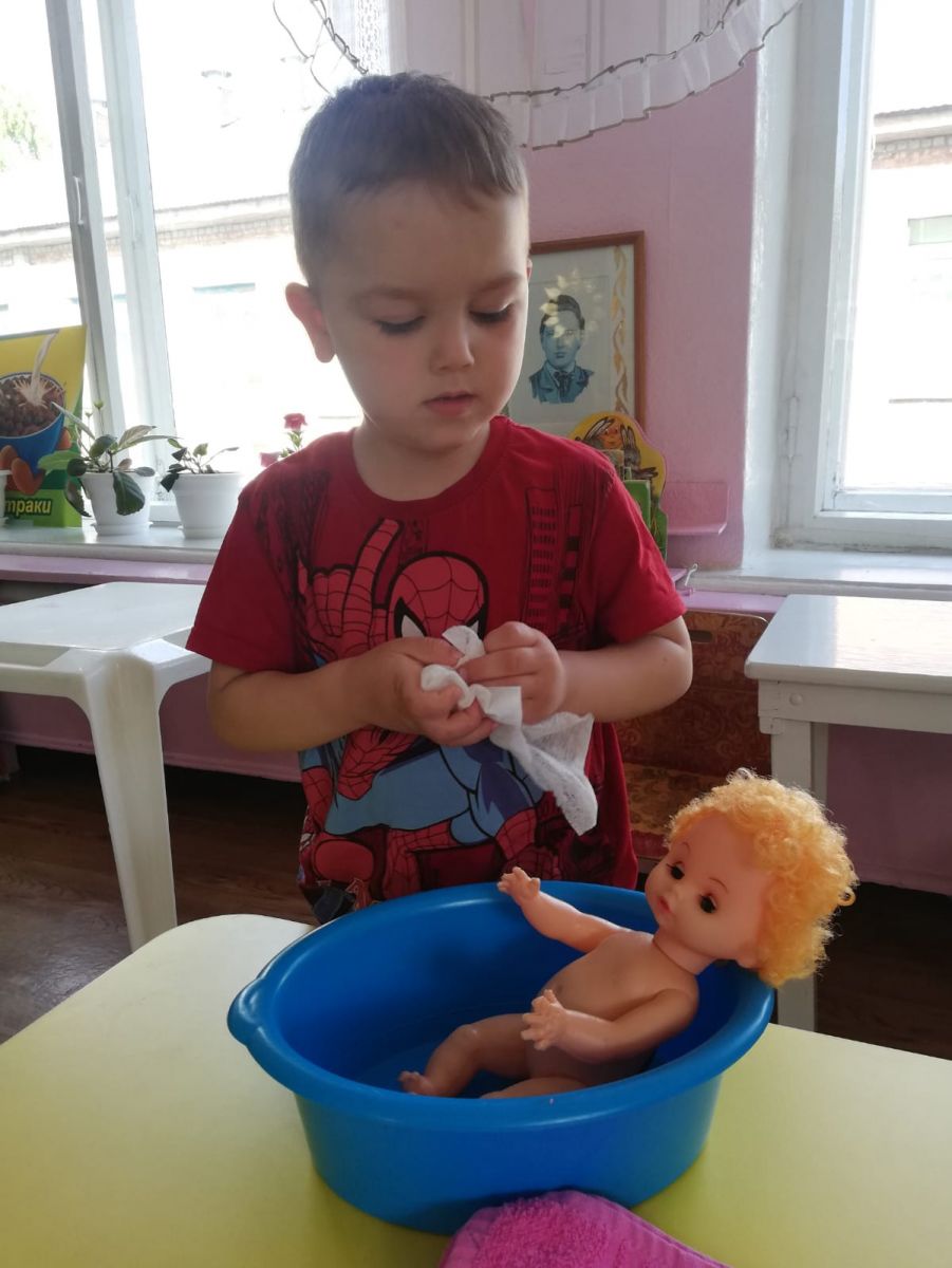 Также проводилась дидактическая игра «Моем фрукты и овощи», «Купание куклы». У детей расширились знания о здоровье и правилах личной гигиены, ребята с радостью приняли участие в игре.