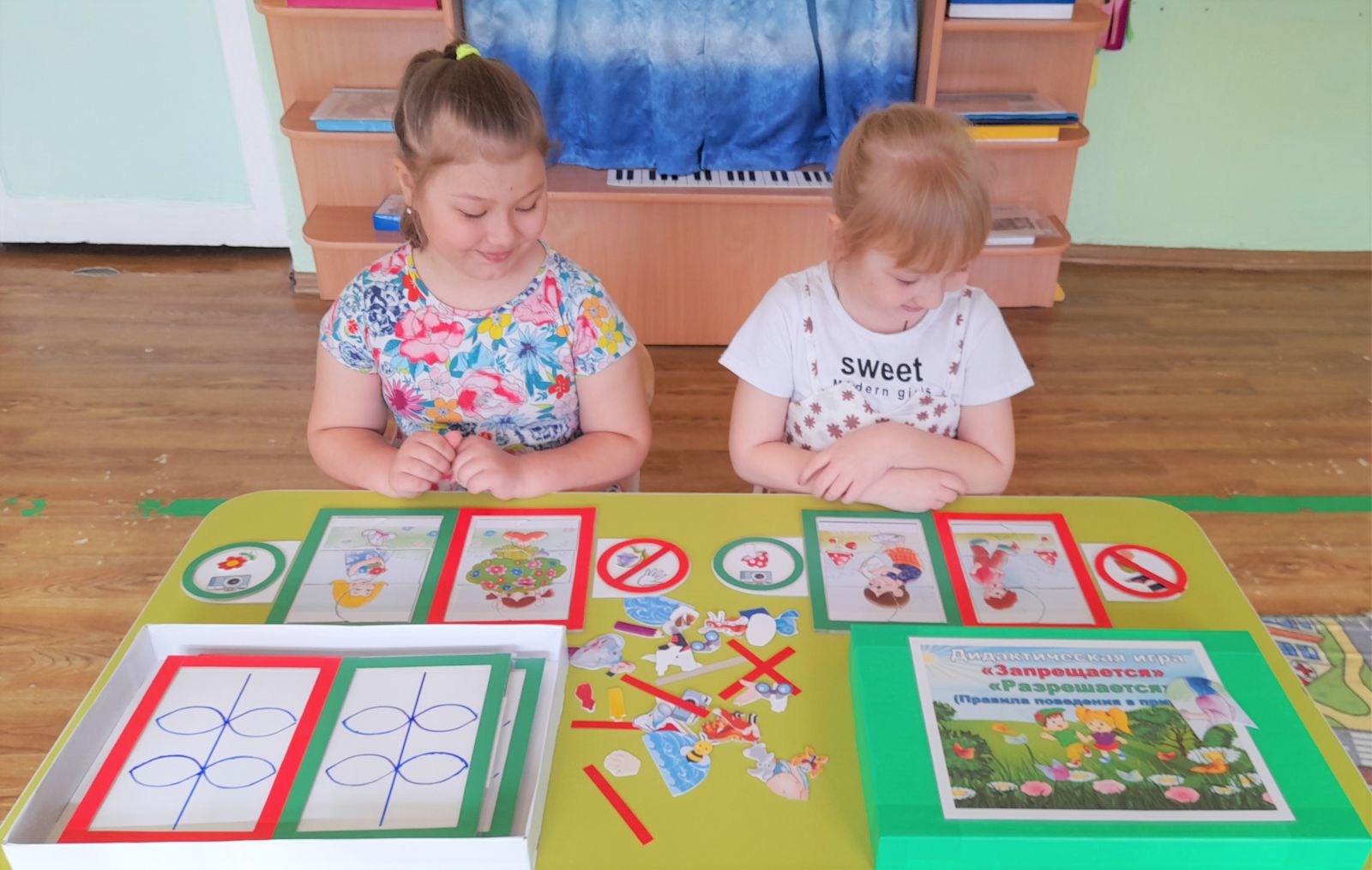 Исходя из этого, воспитатель подготовительной к школе группы «Ягодка» Калинина Н. А. изготовила для своих воспитанников дидактическую игру «Запрещается — Разрешается», нацеленную на закрепление основных правил поведения в природе: «Что запрещается и что разрешается делать в природе?», следуя принципу, «Не навреди!».