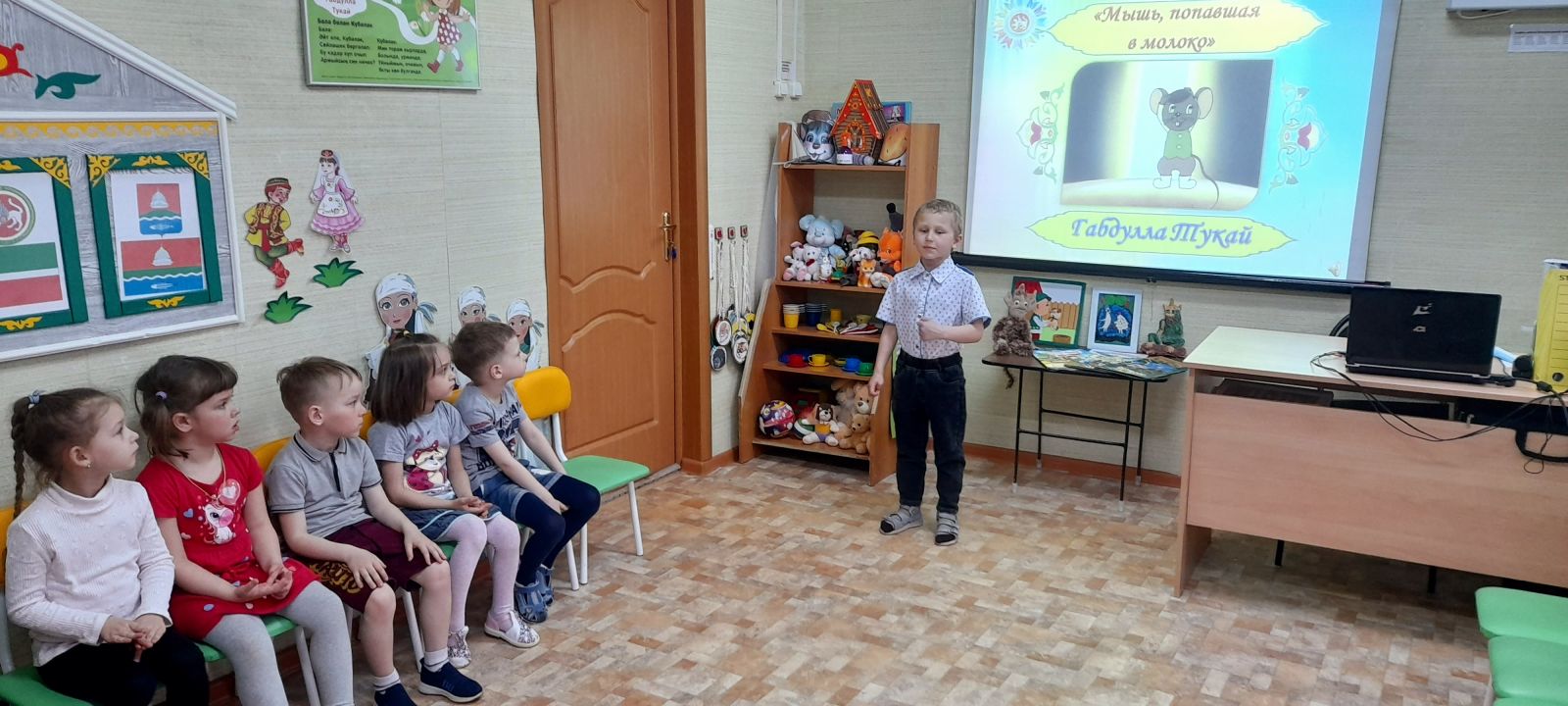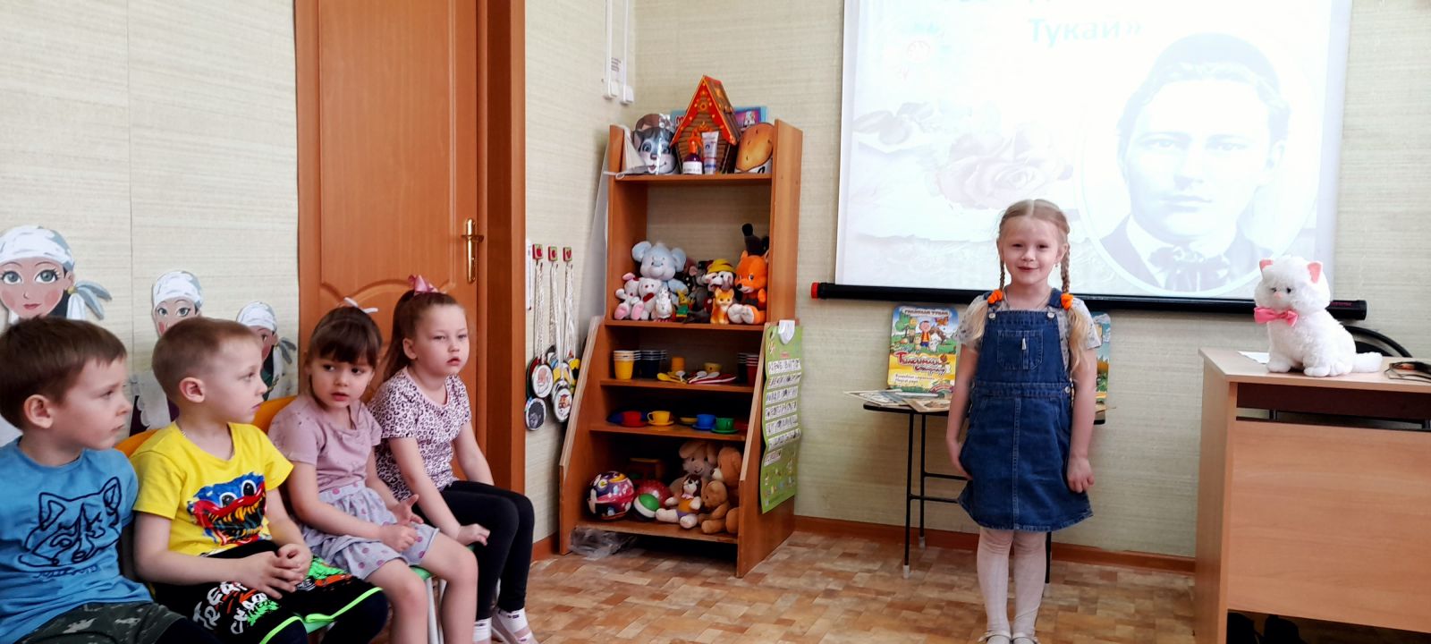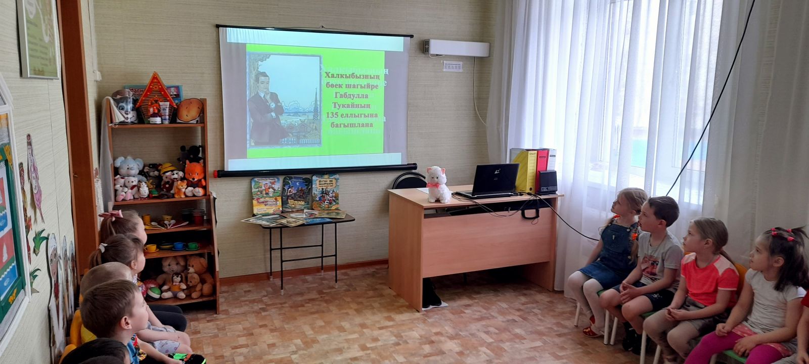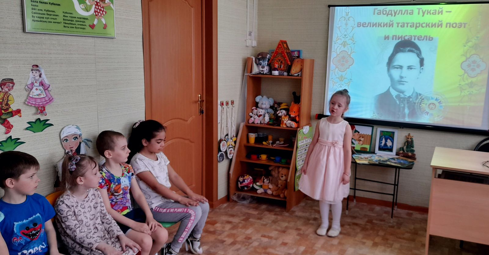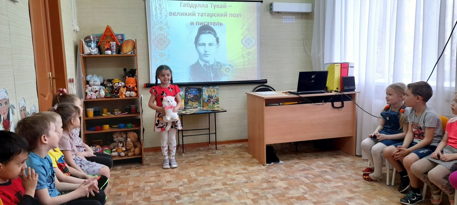 Опубликовано: 26.04.2022В нашем детском саду «Светлячок» прошёл музыкально-литературный вечер «Наш любимый Г.Тукай», посвящённый творчеству татарского поэта и писателя Габдуллы Тукая.
