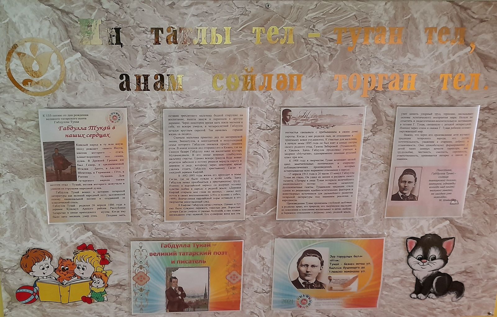 На стенде «Иң татлы тел — туган тел, анам сөйләп торган тел» была представлена информация о жизни и творчестве Г.Тукая.