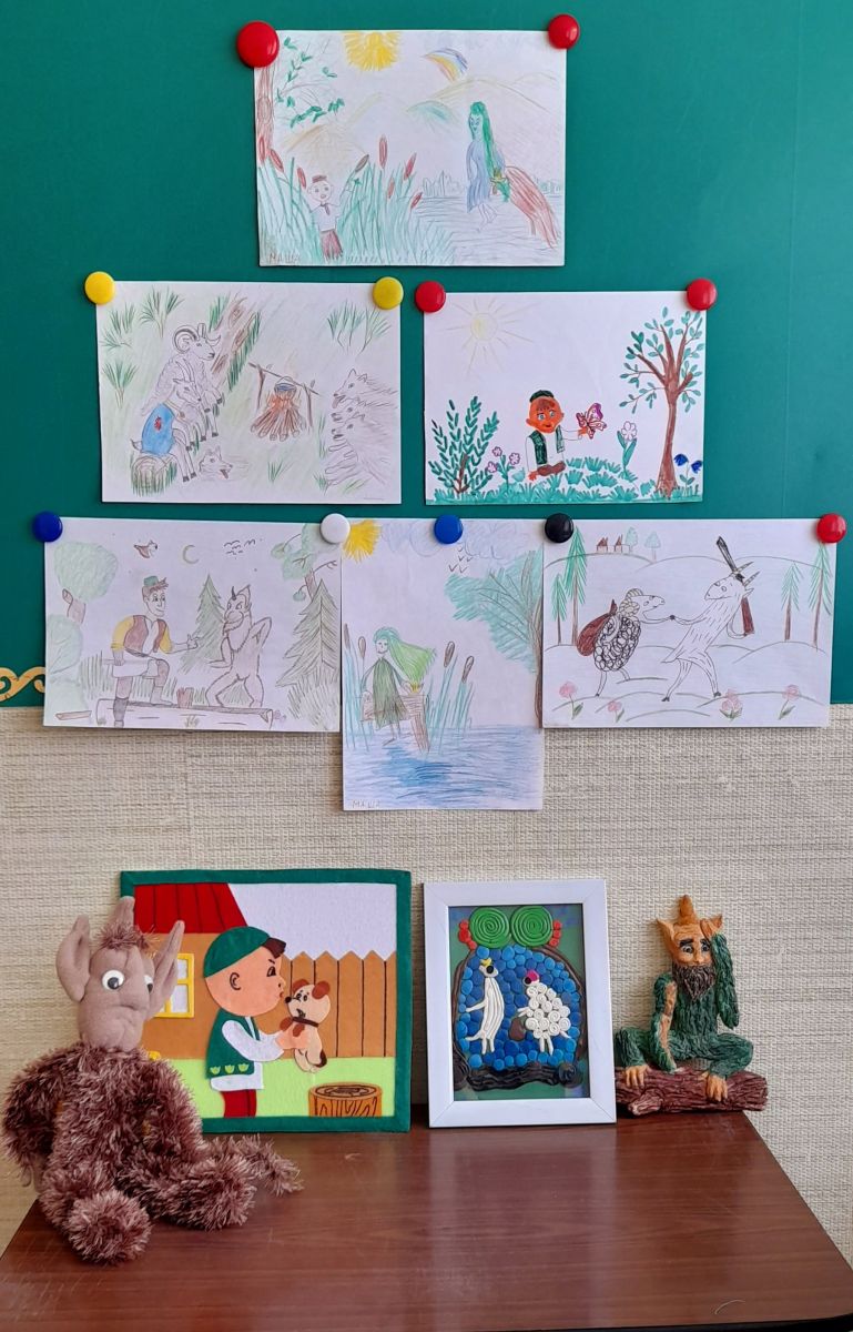 Подготовительная группа «Ягодка» организовали выставку детских рисунков и поделок по произведениям Г.Тукая.