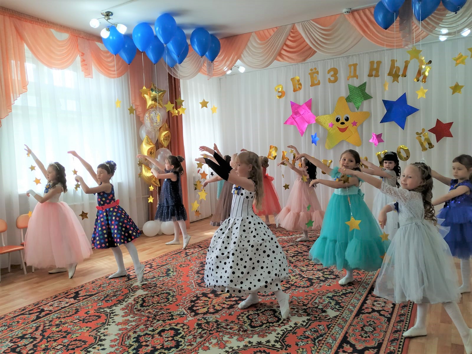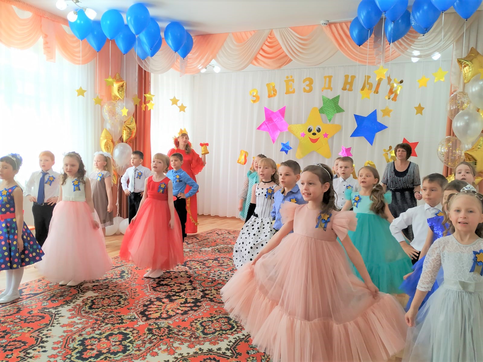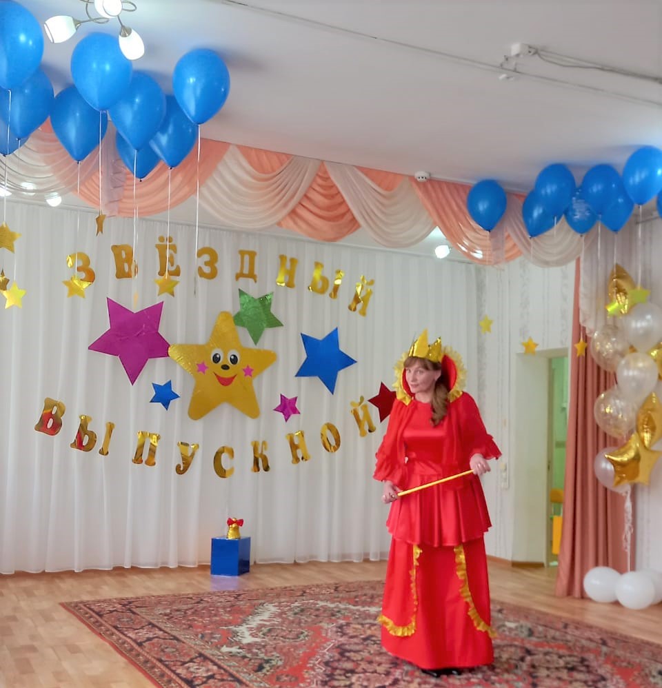 В этом учебном году выпускниками стали дети из подготовительной к школе группе «Ягодка» (воспитатель Калинина Н. А.). Для них был подготовлен и проведён утренник «Звёздный выпускной».