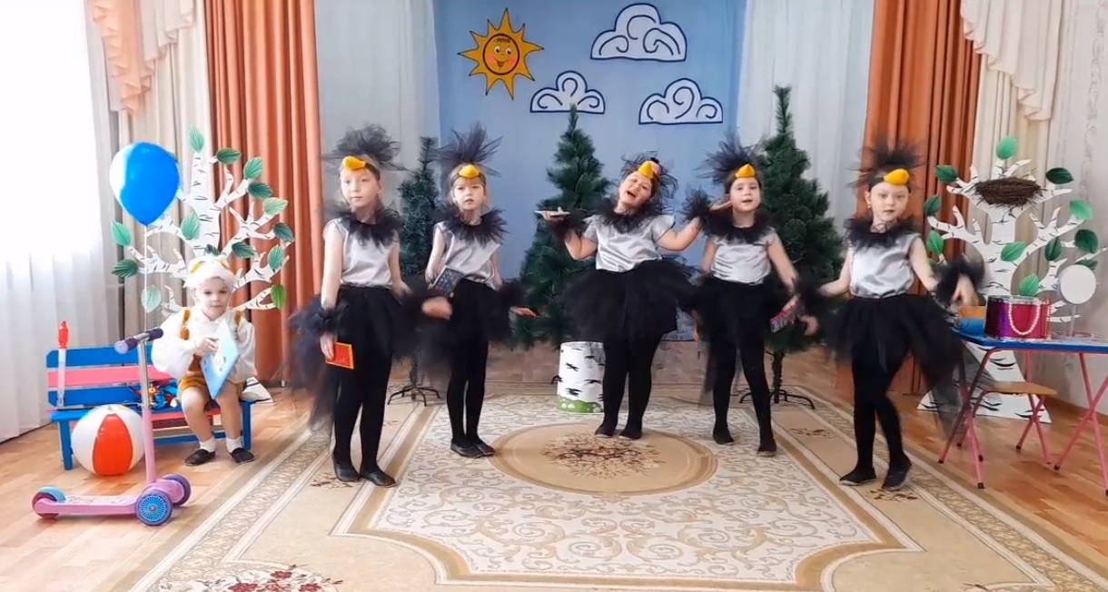 Педагоги нашего детского сада — музыкальный руководитель Шарагина Н. В. и воспитатель Калинина Н. А. с детьми из подготовительной к школе группы «Ягодка» подготовили конкурсную работу в номинации «Вокал-ансамбль» (песня «Ворона Алёна»).