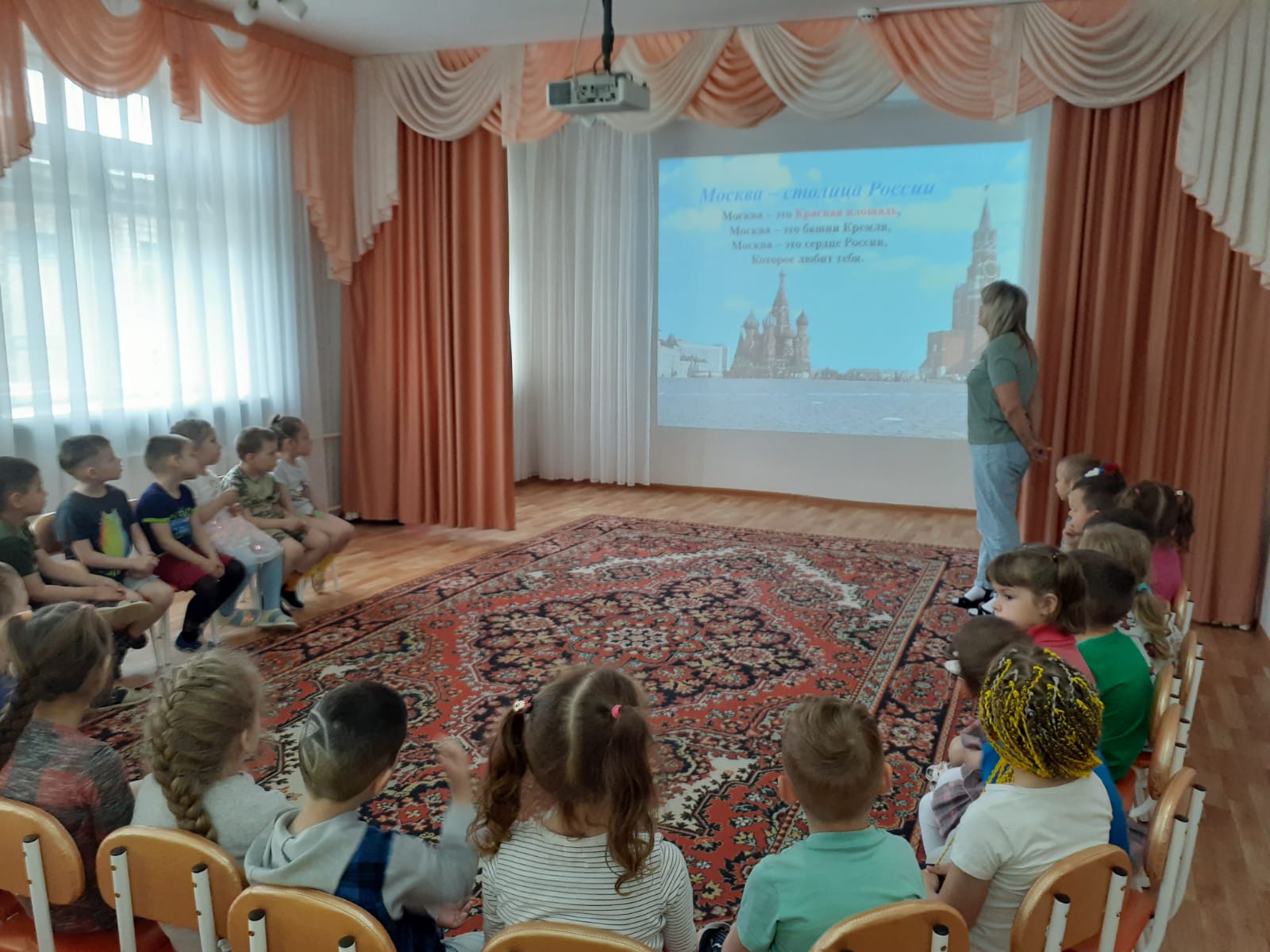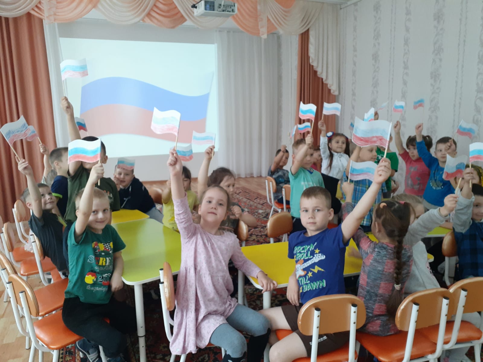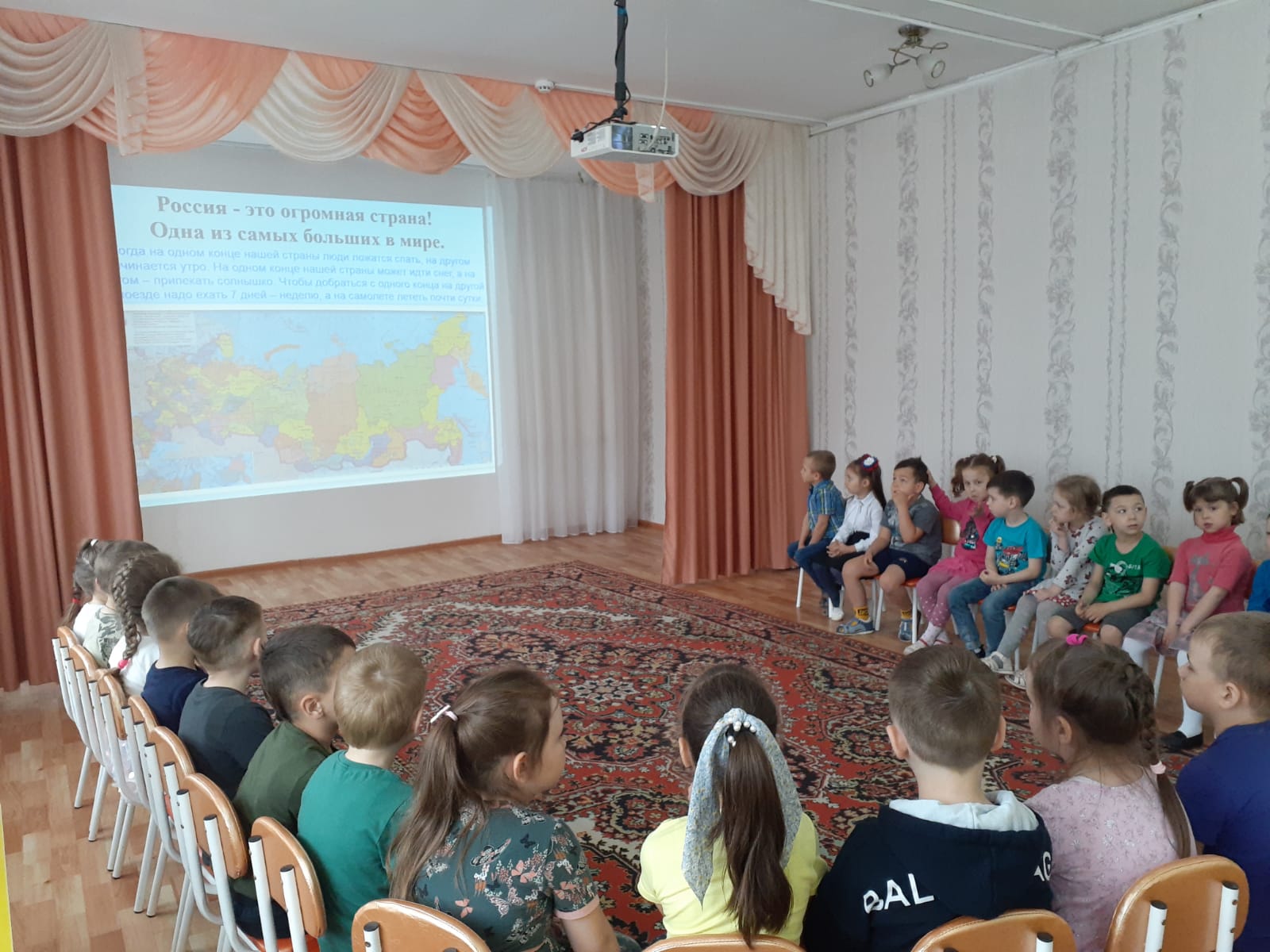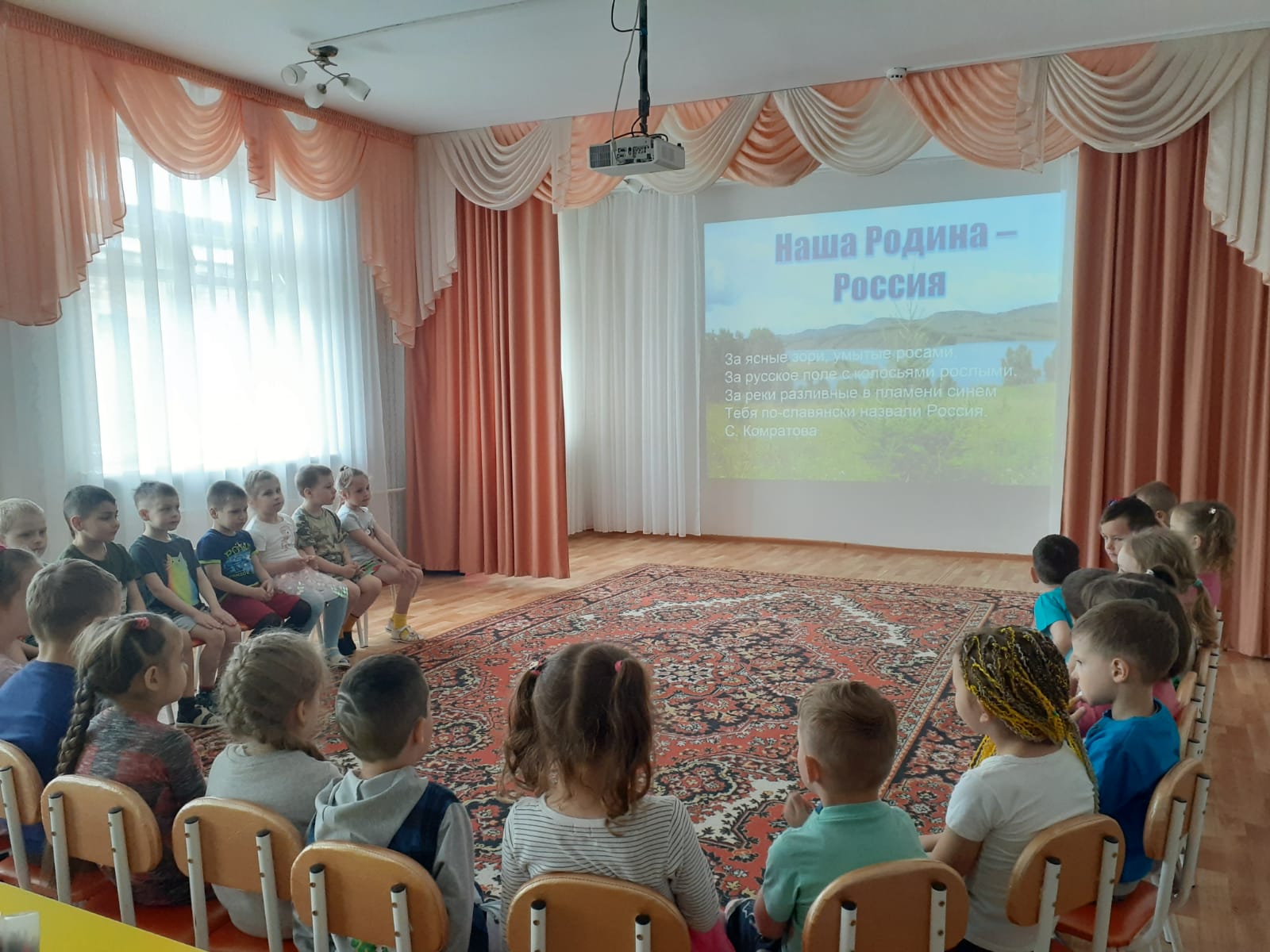 В группах "Почемучки" (воспитатель Губина Л.В.) и "Пчёлки" (воспитатель Капустина А А.). прошло тематическое мероприятие, направленное на формирование у детей представлений о России, как государстве, о родной стране, воспитании чувства любви к родному краю, Родине.