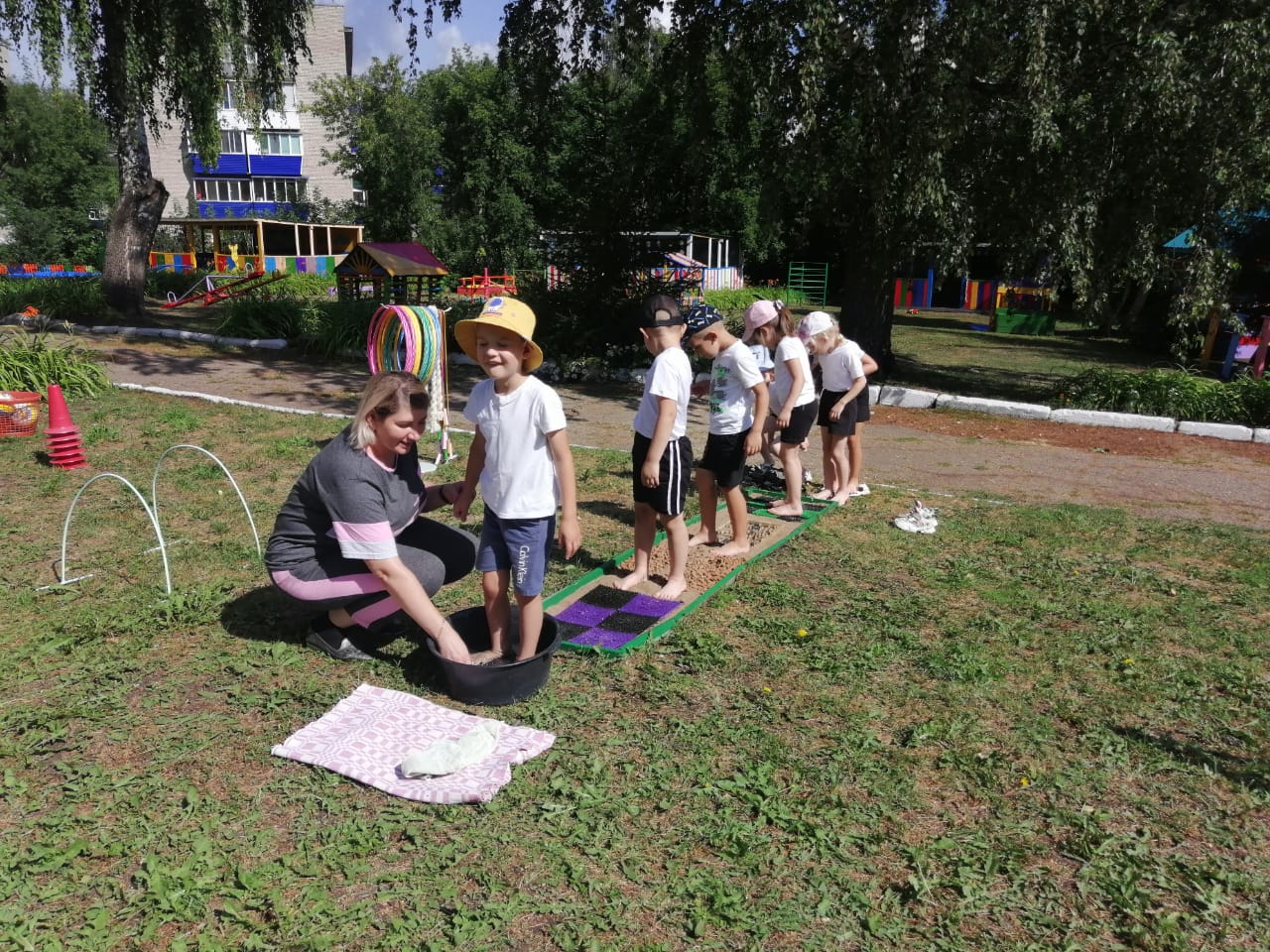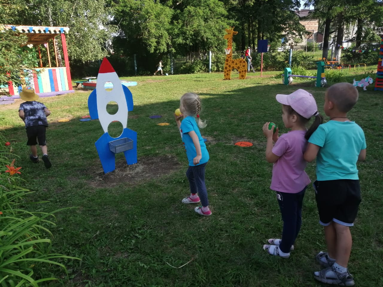 На прогулке проводились спортивные и подвижные игры на ловкость, скорость и выносливость. Ребята показали отличные результаты и заряжались позитивными эмоциями. Так же всю неделю дети принимали солнечные и воздушные процедуры. Самому любимому для детей спортивному снаряду — мячу, был посвящён целый день. Дети играли в футбол. Даже девочки, защищавшие ворота, не пропустили ни одного мяча. Каждый спортивный день этой недели способствовать физическому развитию детей и укреплению их здоровья.
