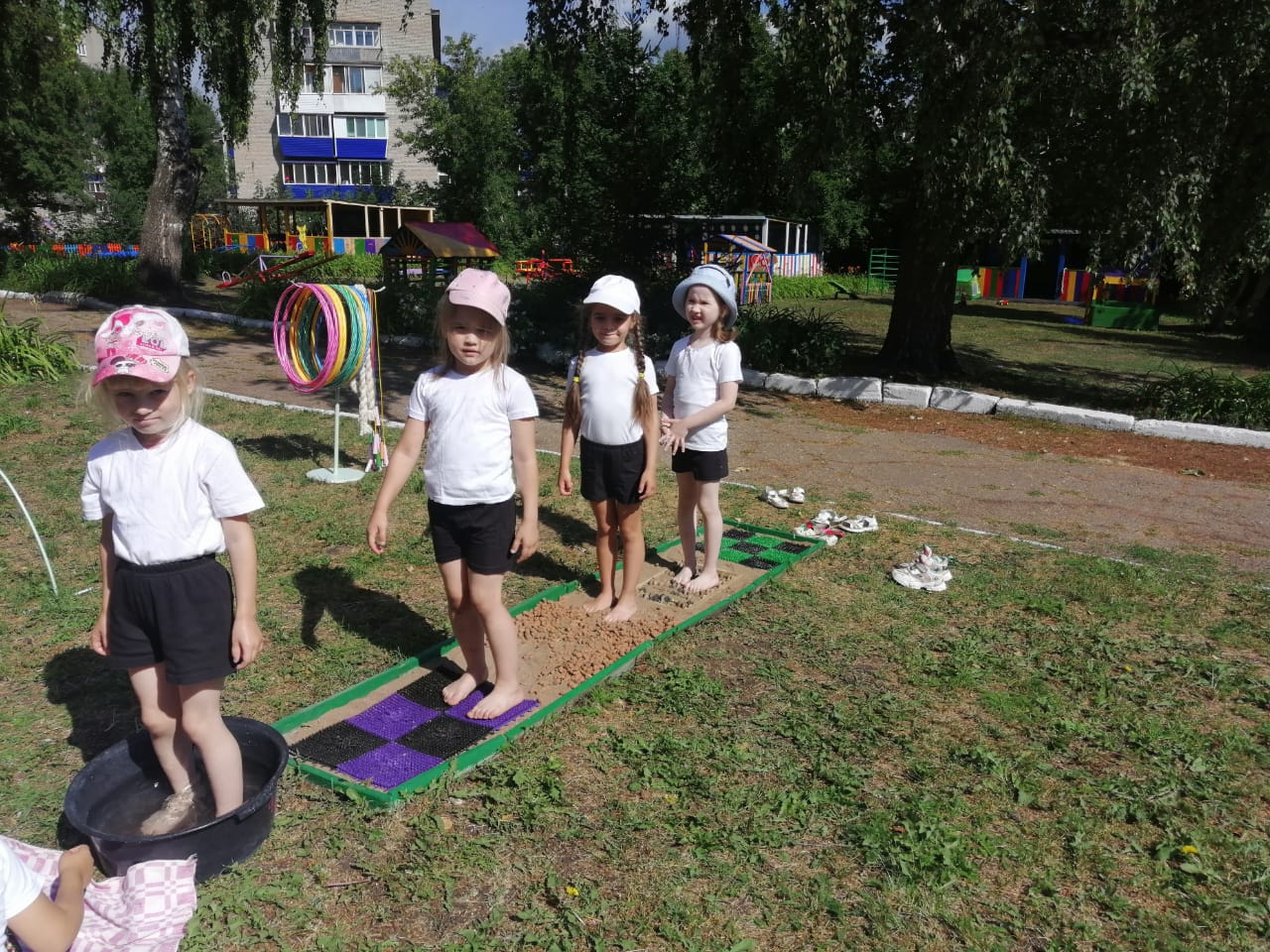 Утренняя гимнастика на свежем воздухе всегда придаёт детям заряд энергии на целый день, а ходьба по массажным дорожкам и по тропе здоровья у детей вызывает бурю восторга и эмоций.
