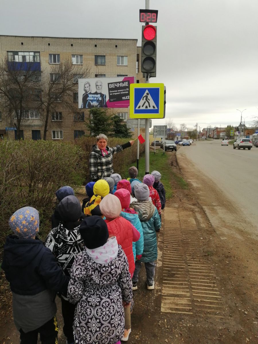 В группе «Радуга» педагогами проводились беседы о правилах дорожного движения: «Дорожные знаки», «Наш друг светофор», «Виды транспорта». Воспитатели (Бажитова Е.Н. и Мосолова Е.П.) организовали целевую прогулку «Путешествие к светофору». По пути дети рассматривали различные виды транспорта. Ознакомились с правилами, как правильно проходить проезжую часть по пешеходному переходу с помощью друга светофора.