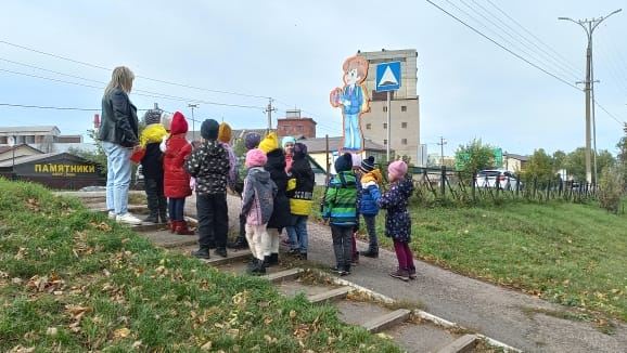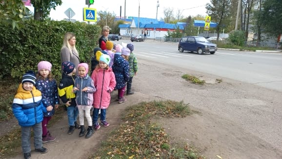Итогом тематической недели стала целевая прогулка к перекрёстку со светофором.