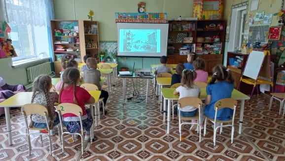 Ребята группы «Пчёлки» выполнили коллективную аппликацию «Улица нашего города», а также с удовольствием рассматривали, складывали из бумаги и раскрашивали изображения транспортных средств. Дети рассказывали о том, как они добираются в детский сад, встречают ли на пути светофор и дорожные знаки.