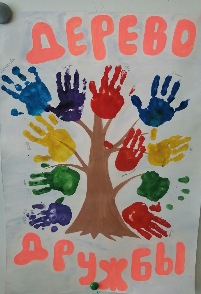 Итогом недели стала творческая коллективная работа «Дерево дружбы», выполненная в нетрадиционной технике рисования (отпечаток ладошки).