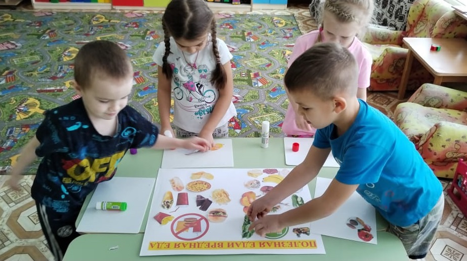 Как итог тематической недели дети изготовили стен газету "Полезная еда и вредная еда".