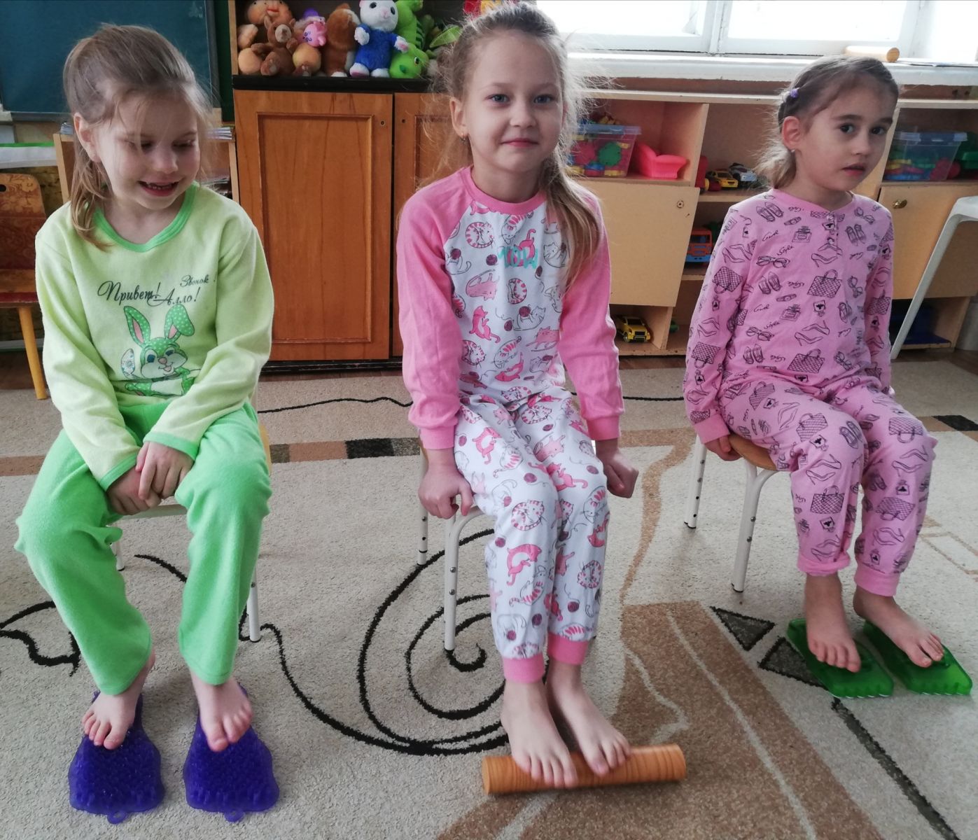 По окончании тихого часа ежедневно делали гимнастику после сна, ходили по массажным дорожкам здоровья.