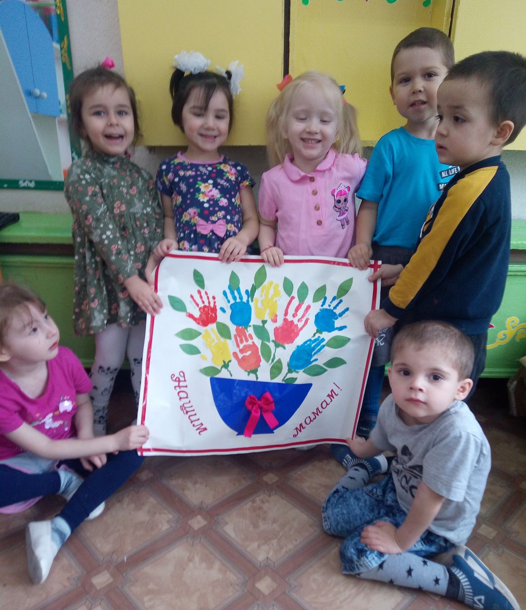 А также малыши группы "Кояш" приняли участие в оформлении поздравительной открытки "Подарок для мам" ("Әниләр өчен бүләк").