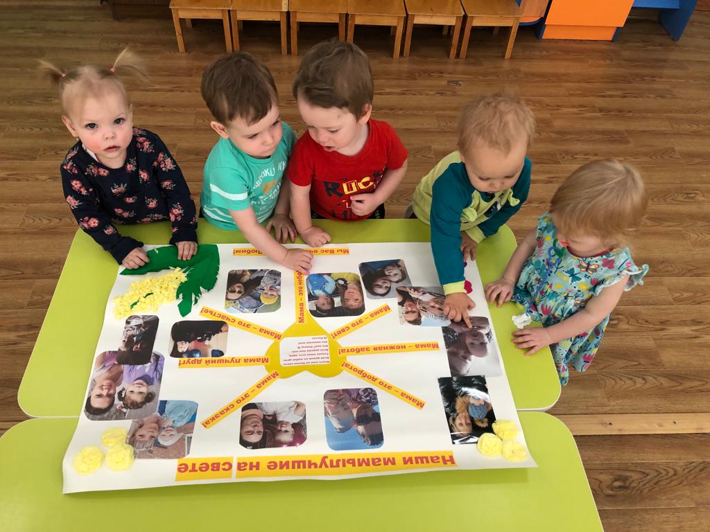 25.11.22г. В первой младшей группе «Неваляшки» (воспитатель Свежинкина И.А.), в рамках тематической недели, посвящённой Дню матери, прошли занятия, беседы, посвящённые нашим мамам. Детям были прочитаны рассказы и стихи о маме, о её нежных и ласковых руках, о добром сердце. Дети с воспитателем изготовили коллективную газету «Букет для мамы».