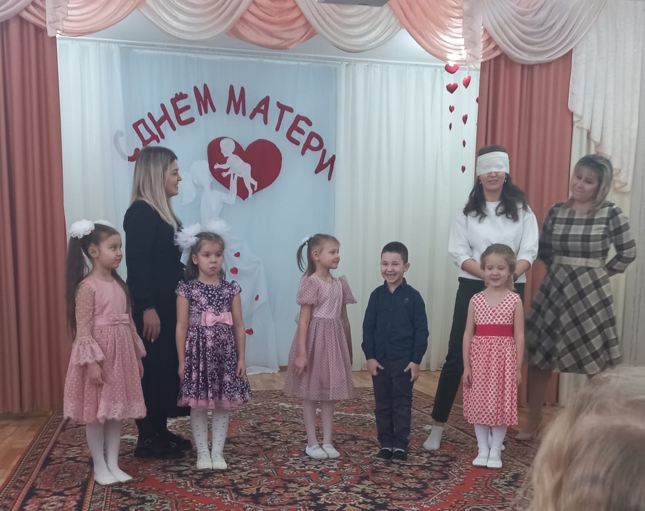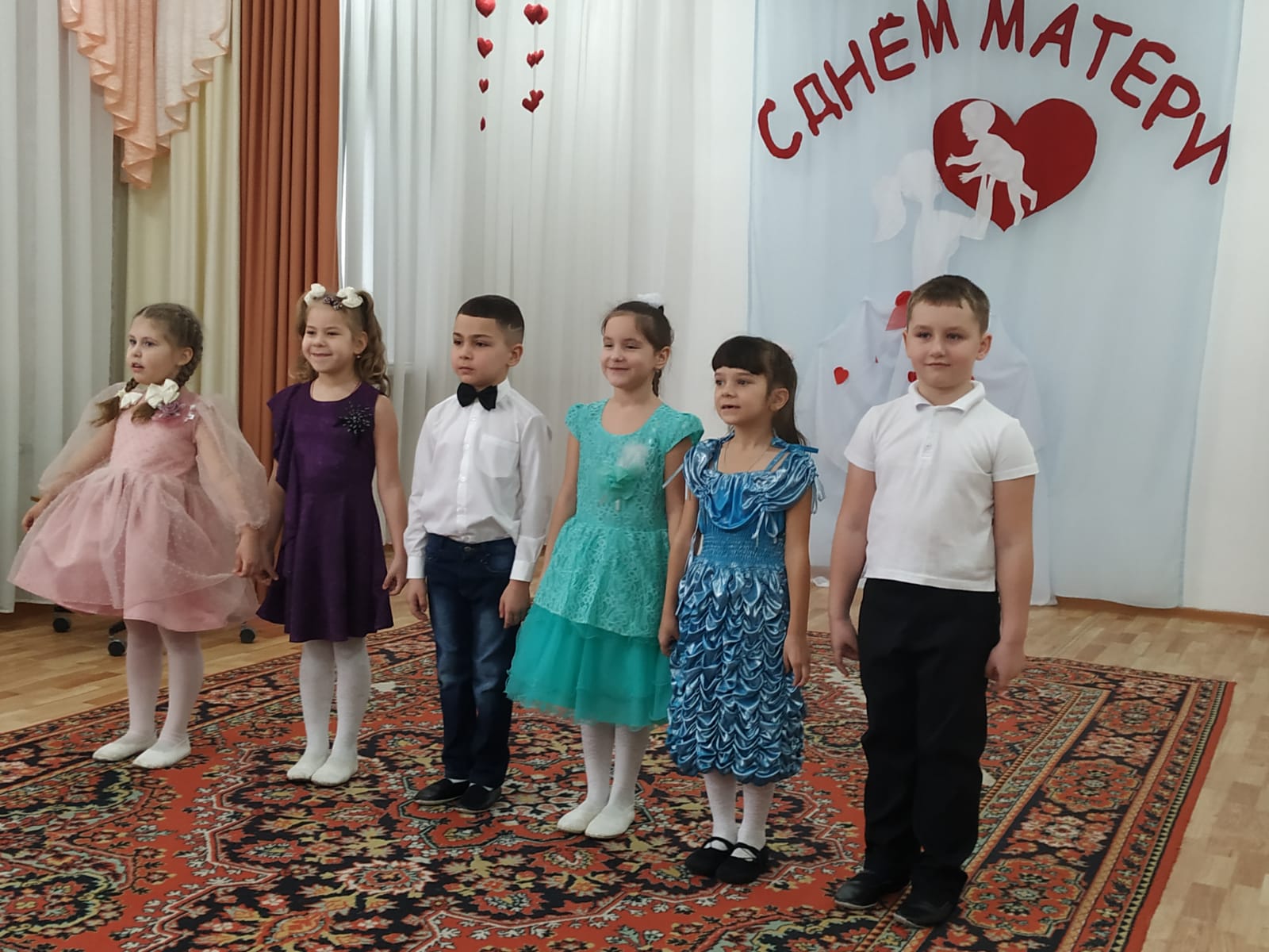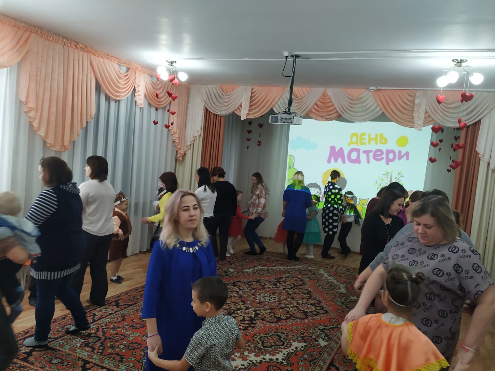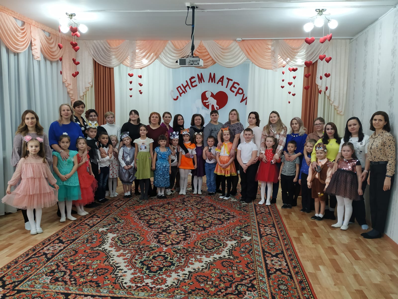 Множество тёплых, ласковых слов и пожеланий прозвучали в адрес мам. Дети посвящали стихи, пели песни для мам. Радовали оригинальными танцевальными композициями, которые приготовили с музыкальным руководителем Шарагиной Н. В. С большим удовольствием принимали участие в конкурсах дети и их мамы, и даже папы. На праздник приходил «Нехочуха» (воспитатель Деркач З.М.), весело поиграл с детьми.