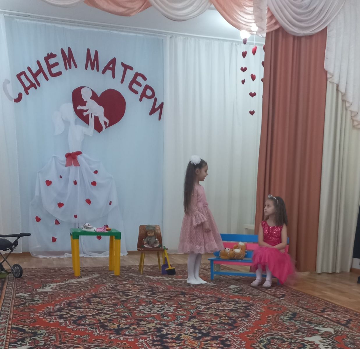 В этот день для мам звучали стихи и песни; дети подарили своим мамам трогательные танцы; играли в разные интересные игры. С мамами проводились конкурсы «Сообрази-ка», «Кулинарный», «Музыкальный», «Художественный».
