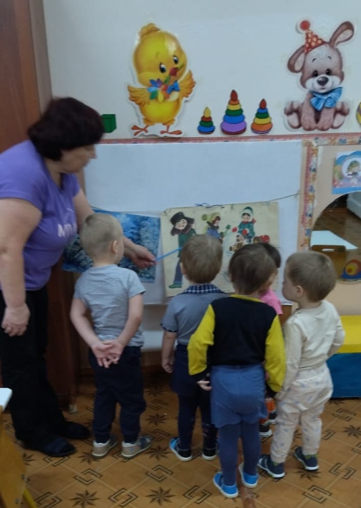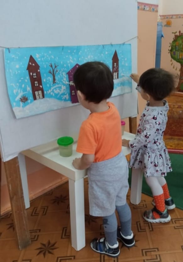 09.12.2022г. В рамках тематической недели «Здравствуй, Зимушка-Зима!» в первой младшей группе «Неваляшки» (воспитатель Свежинкина И.А.) были проведены мероприятия на закрепление основных признаков зимы. Малыши рассматривали иллюстрации, картины о зиме. Проводились беседы с детьми на тему: «Какая одежда нужна зимой», «Как зимуют птицы, звери», читали детям стихотворения, потешки о зиме. Ребята ватными палочками дорисовывали снег на домах, деревьях. Играли в подвижные игры: «Зайка беленький сидит», «Заморожу»; пальчиковую игру «Снег».