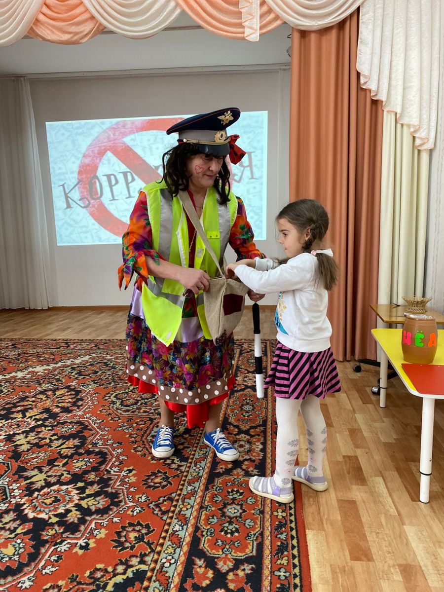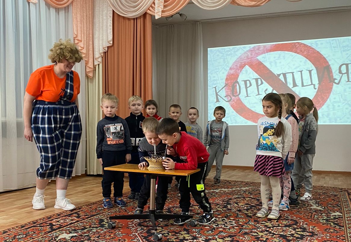Сегодня в старшей группе "Радуга" прошло развлечение "Герои сказок — о коррупции". В доступной форме педагоги (Бажитова Елена Николаевна и Мосолова Елена Петровна) раскрыли дошкольникам понятие "коррупция", показали на примерах, к каким последствиям она может приводить, и как бороться с этой проблемой; раскрыли «невыгодность» коррупционного поведения для каждого члена общества.