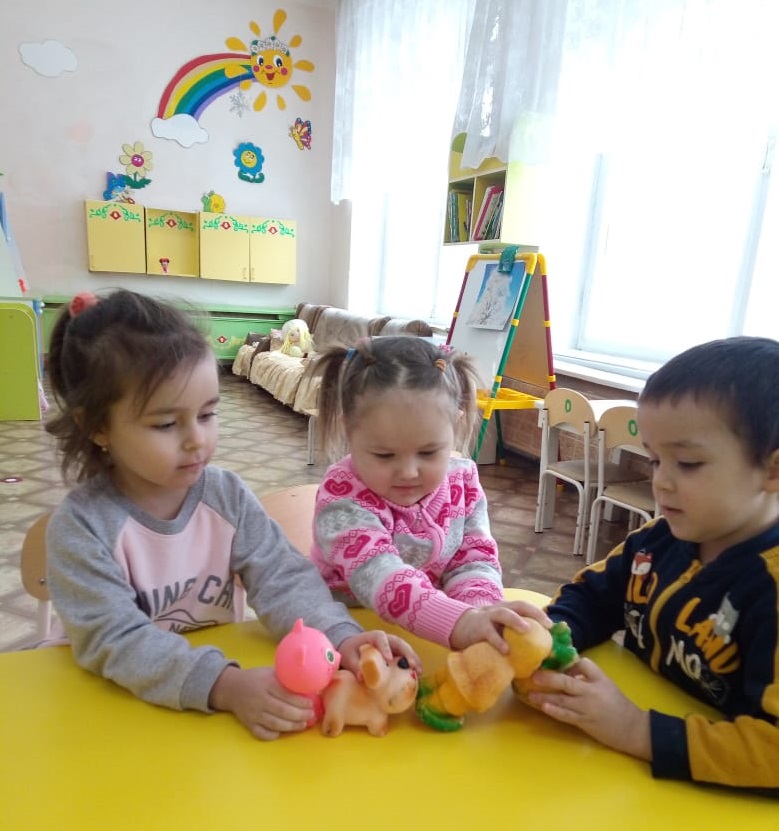 - Дидактические игры: "Найди и покажи" (по сказкам); "Кто самый большой, кто самый маленький", "Кого нет? " ("Кем юк?") (по сказке "Теремок").