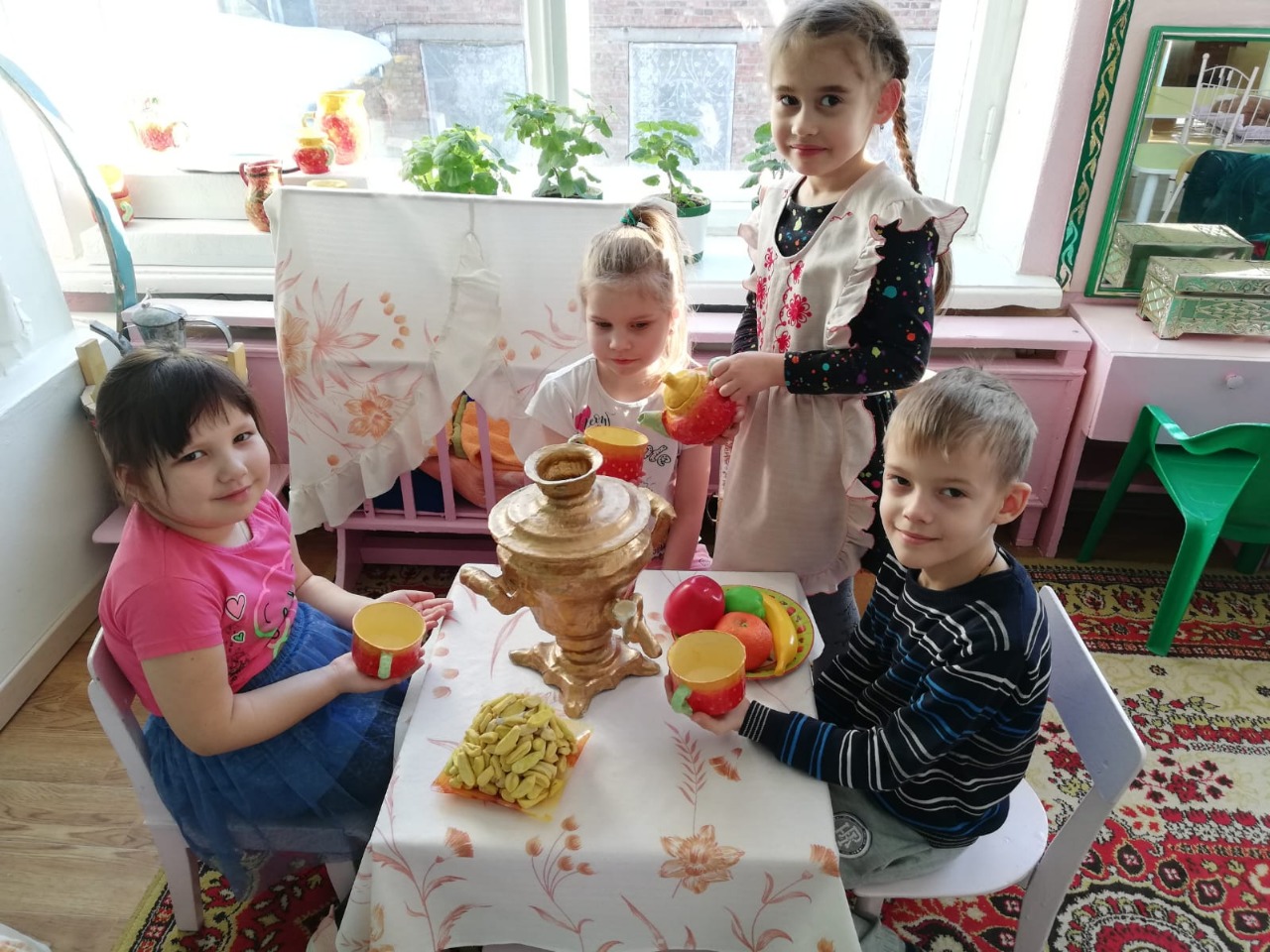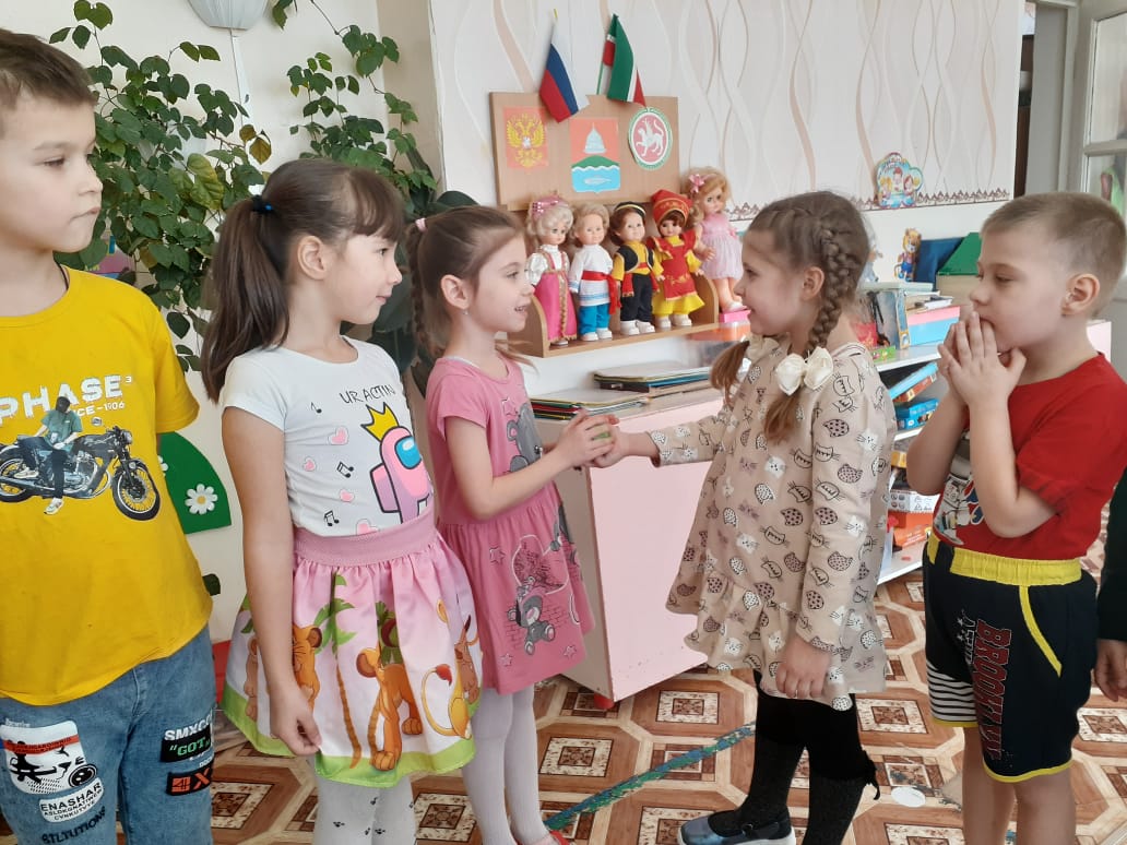 С удовольствием рассматривали иллюстрации в книгах, рисовали и лепили подарки друг другу, играли в сюжетно-ролевые и дидактические игры, строили пирамиду вежливых слов, учились хорошим манерам.