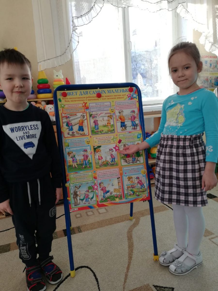 Ребята увлеченно беседовали на темы: «Какое доброе дело я сделал?», «В мире вежливых слов», «Мы идем в гости», «Правила поведения в общественном транспорте», «За столом», «Мы любим делиться».
