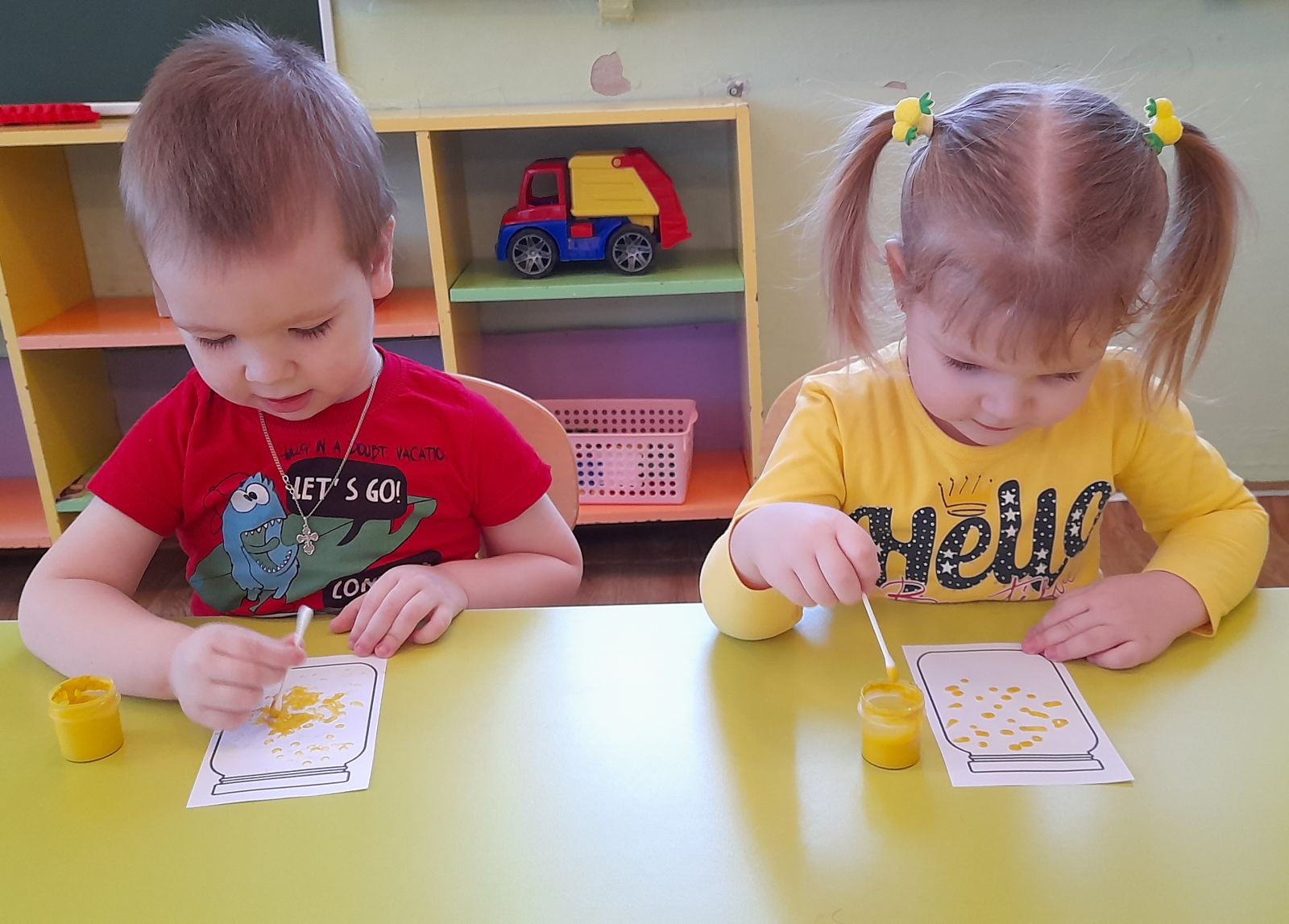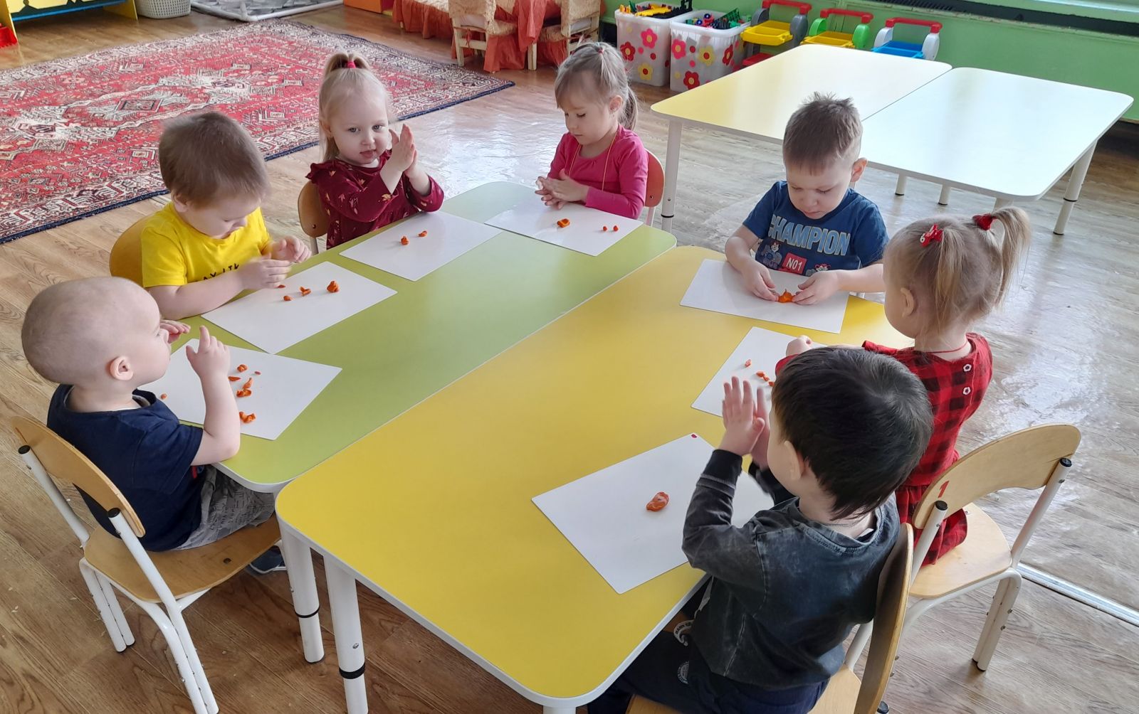 На протяжении недели малыши играли в различные дидактические игры: «Подбери предметы личной гигиены», «Полезные и вредные продукты», «Подбери вид спорта». Была организована игровая ситуация «Уложим куклу спать» и сюжетная игра «На приёме у врача»; а ещё, малыши лепили из пластилина различные овощи для салата и рисовали витамины в баночке.