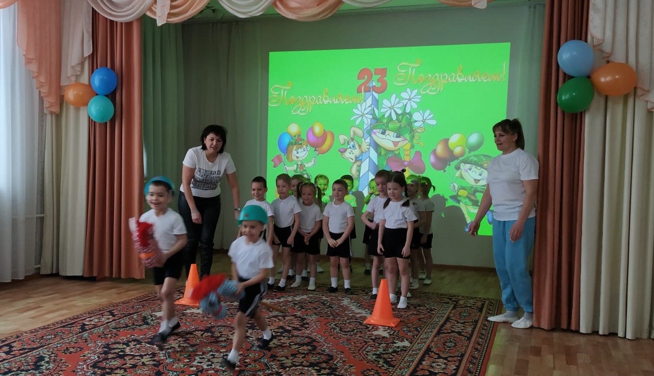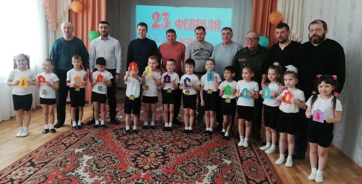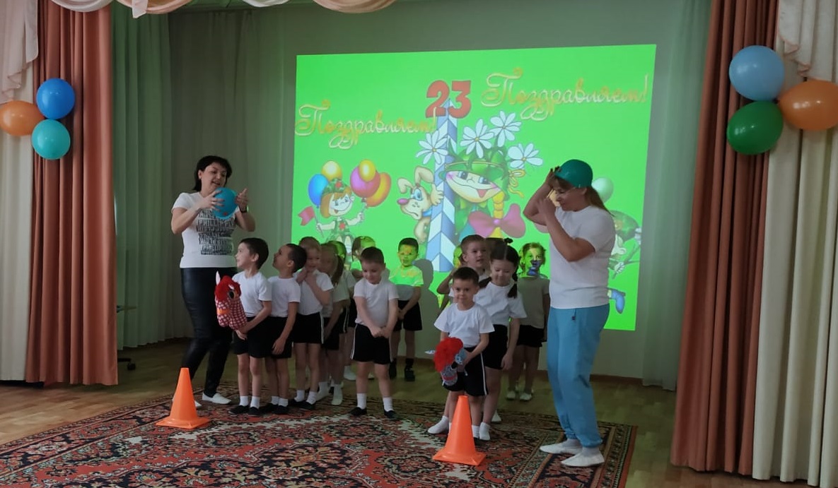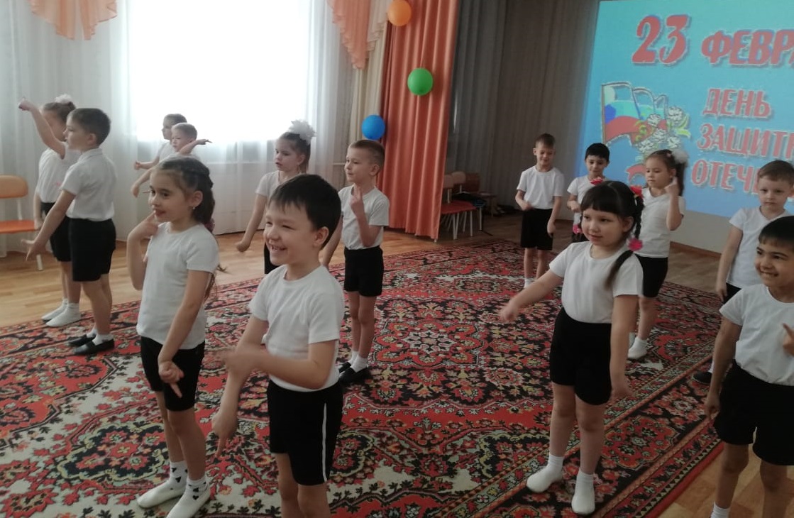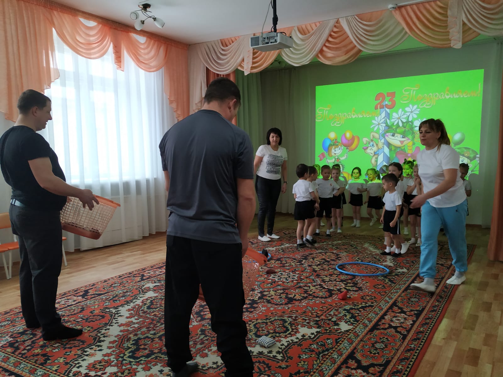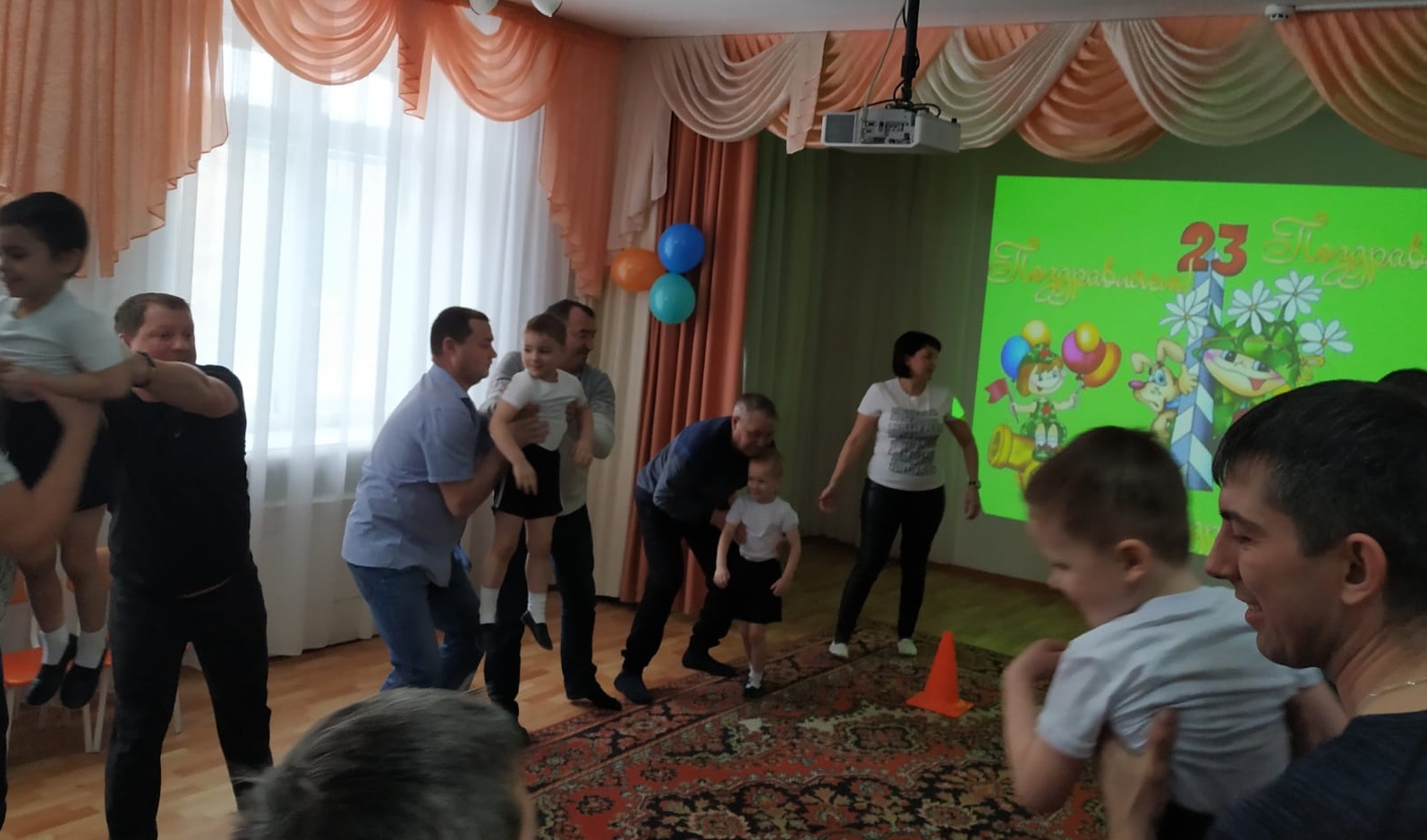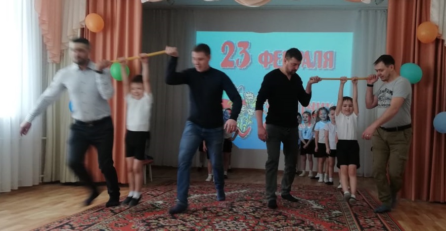 В старшей группе «Ляйсан» ( воспитатели Фаттахова Л.С., Ганеева З.Г. и музыкальный руководитель Шарагина Н.В.) прошёл музыкально-спортивный праздник, посвящённый Дню защитника Отечества, где дети вместе с папами, дедушками участвовали в конкурсах, эстафетах, демонстрируя сообразительность, ловкость и смекалку.