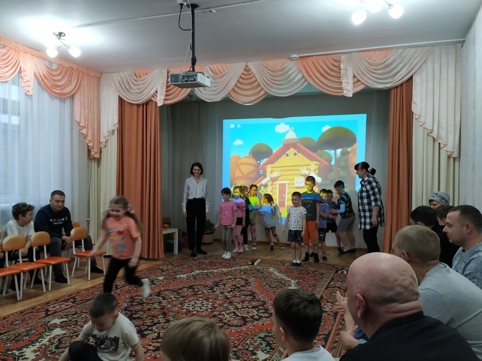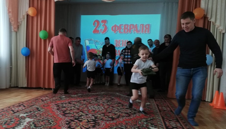 Дети пели песни, с выражением читали стихи, посвящённые папам. В спортивном зале соревновались и играли. Ребята прошли сложную полосу препятствий, старались не уронить "гранату", не застрять в тоннеле.