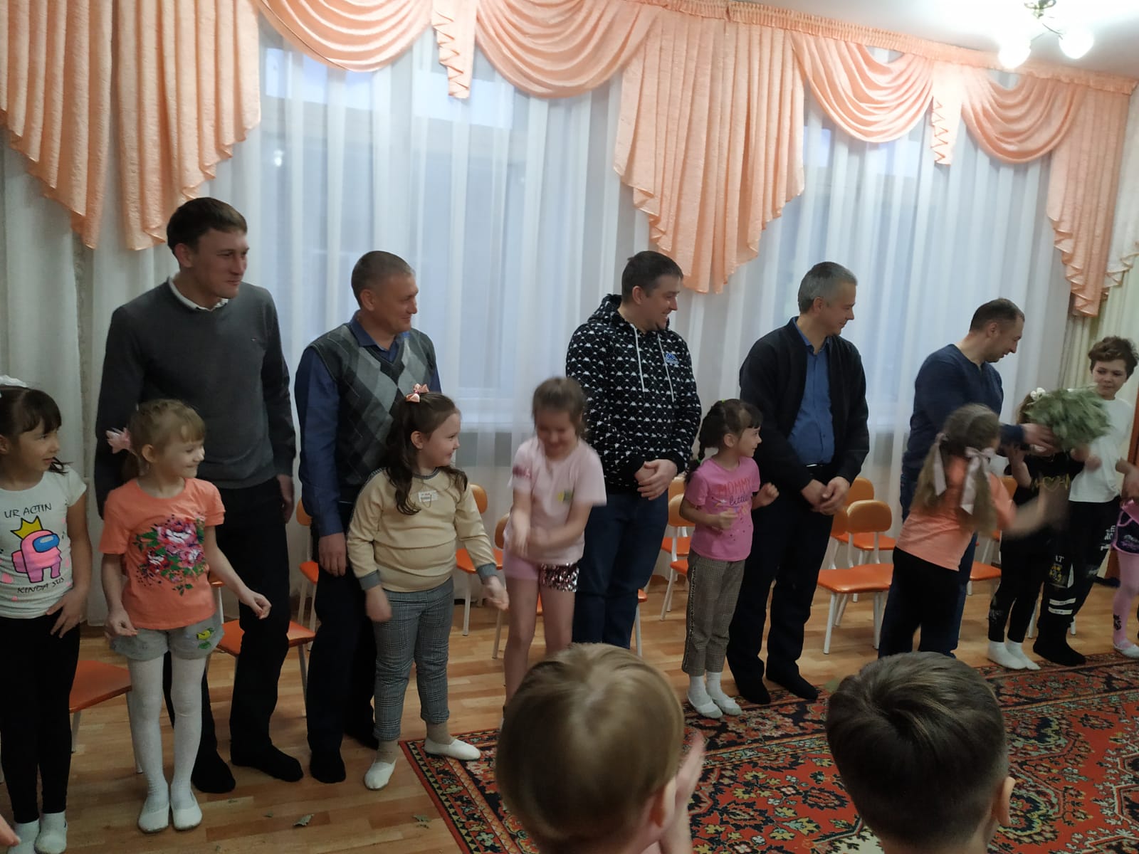 А в подарок своим дорогим и родным папам и дедушкам дети вручили поздравительные открытки, изготовленные своими руками. Счастье и радость переполняли всех!