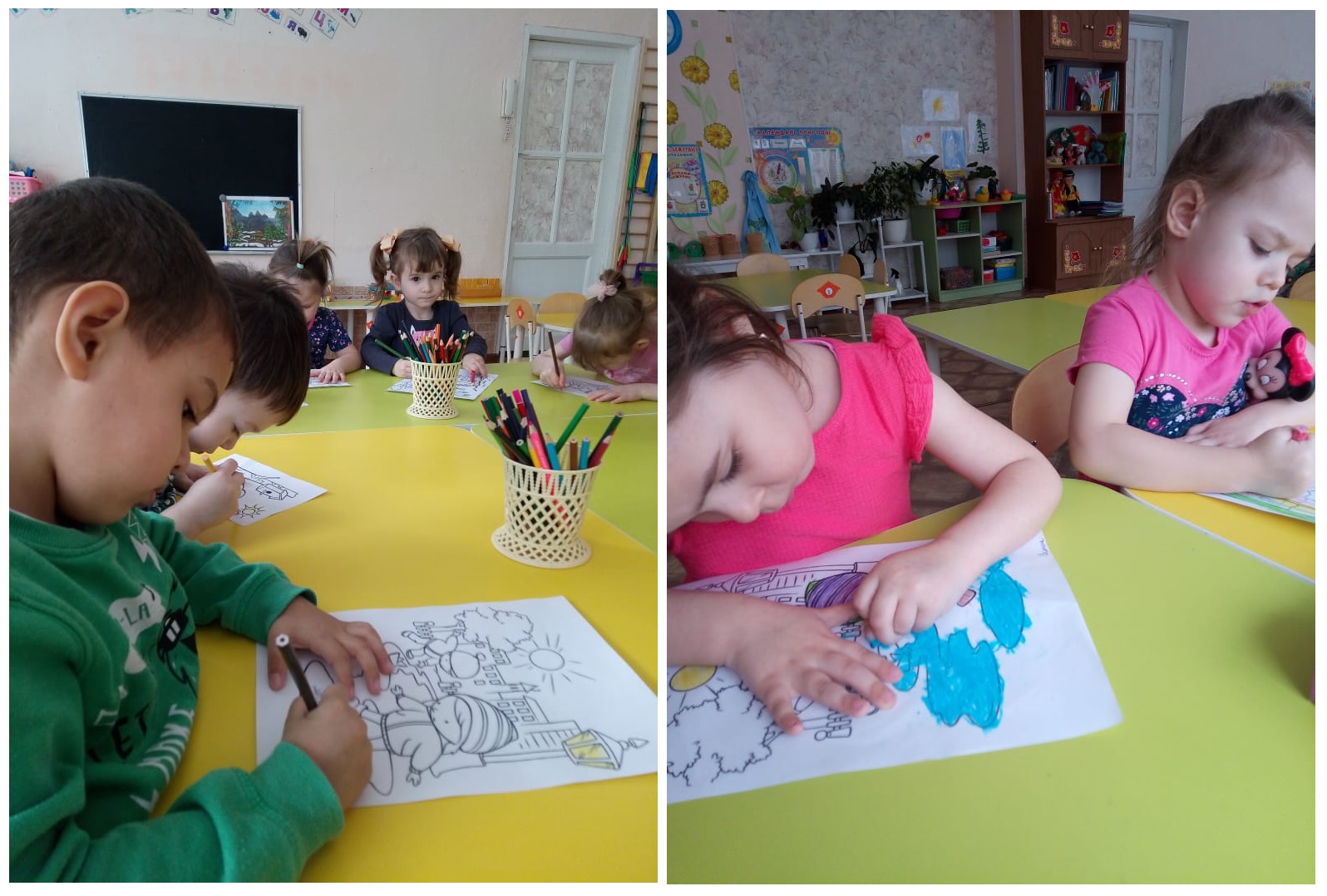 ("Детская сказка о весне" И. Ревю, русская народная сказка "Заюшкина избушка" и др.); играли в пальчиковые игры ("Весна", "Росточек"), в дидактические игры ("Когда это бывает?", "Знакомим куклу с весной"), в хороводную игру "Веснянка"; раскрашивали раскраски на весеннюю тематику.
