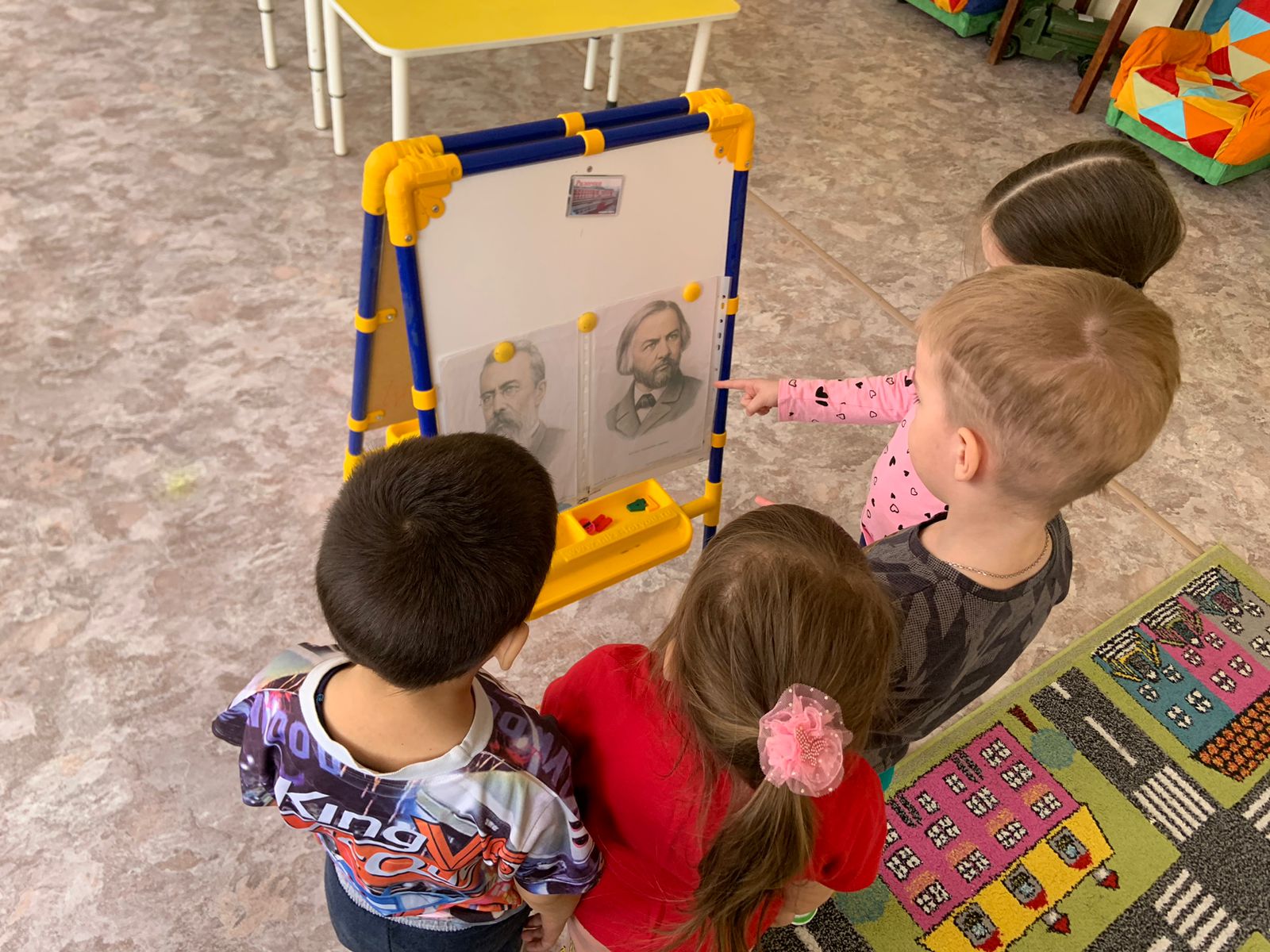 В средней группе «Солнышко» (воспитатели Бородина М. Н., Деркач З. М.) были проведены занятия познавательного цикла о русских и зарубежных композиторах, их творчестве.
