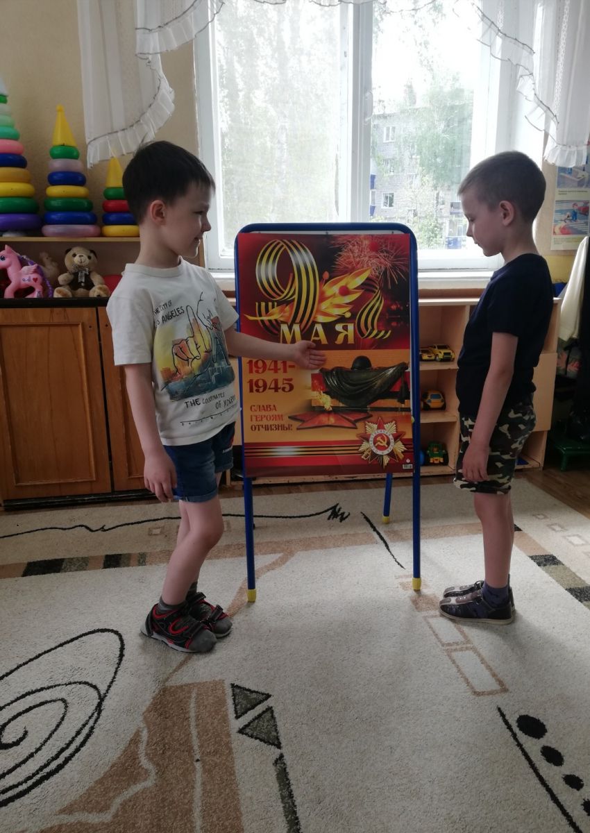 В преддверии празднования 78-летия Дня Победы, в целях патриотического воспитания и воспитания у дошкольников любви к своей Родине и уважения к людям, которые ковали Победу, формирования положительного эмоционального подъёма, воспитатели старшей группы «Ляйсан» (Фаттахова Л.С., Ганеева З.Г.) провели беседы с детьми – «Что такое Парад, Победа», «Улицы хранят имена героев». Читал художественные произведения по теме, просмотрели видеосюжеты. Так же ребята рассматривали иллюстрации военной тематики, играли с военной техникой.