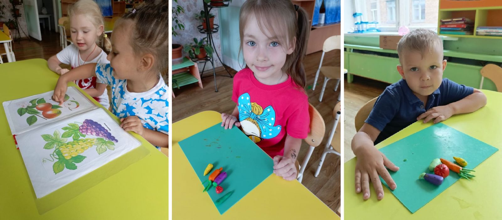 Воспитатели группы проводили с детьми дидактические и развивающие игры: «Собери картинку», «Какое насекомое летает (прыгает, ползает)», «Съедобное, несъедобное», лото «Фрукты», «Ягоды», «С какого дерева листочек» и мн. др. Также рассматривали наглядно-дидактический материал: «Фрукты», «Ягоды»,«Деревья». Провели беседу: «Что поспевает летом?».