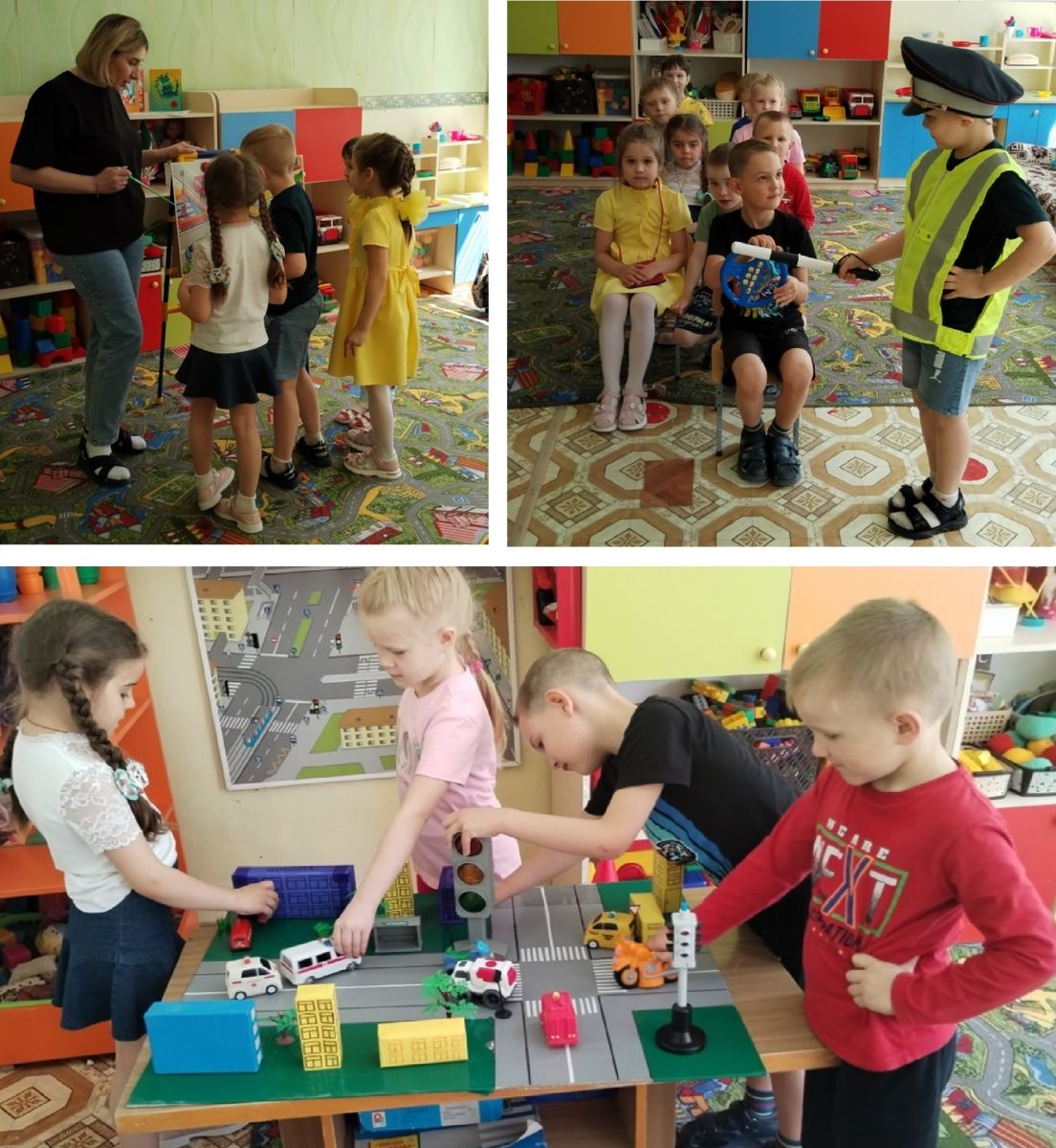 В старшей группе «Радуга» в процессе совместной деятельности педагогов с детьми проводились беседы и игровые ситуации «Правила безопасного поведения на улице», «Помнить обязан каждый пешеход», «Где должны гулять дети». Все игры были направлены на формирование первоначальных навыков поведения на улице и в транспорте, где детям следует играть на улице, чтобы обезопасить свою жизнь, дать представление об улице.