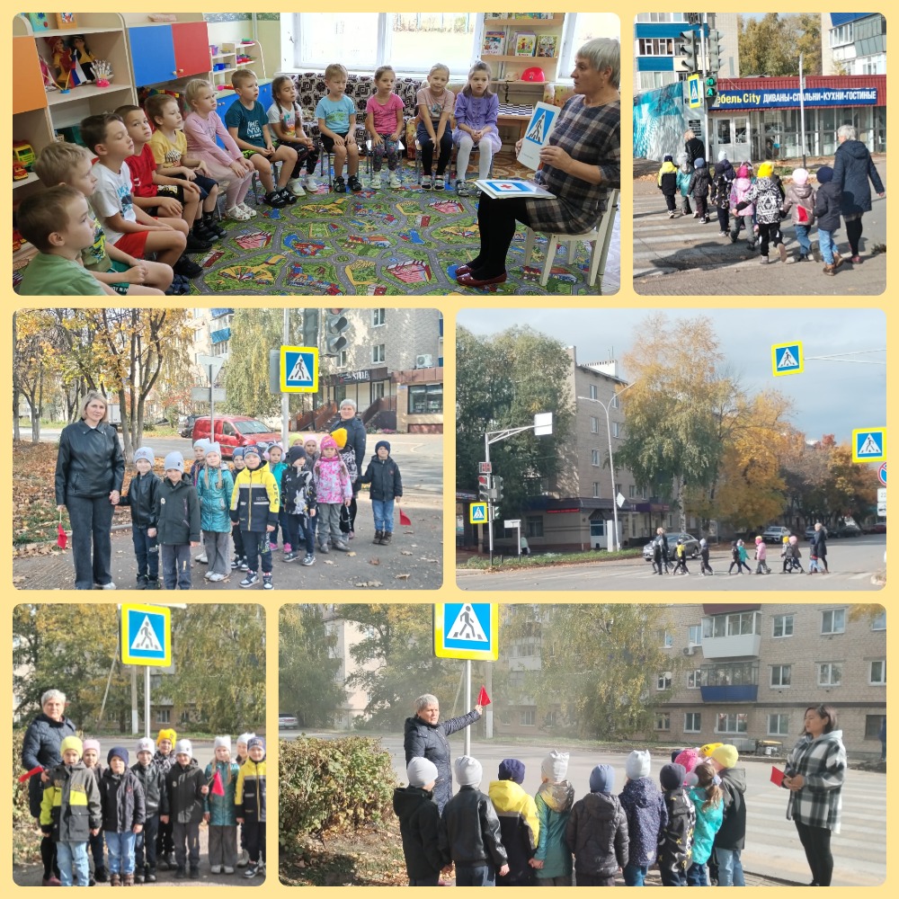 В подготовительной к школе группе «Радуга» (воспитатели Бажитова Е.Н., Мосолова Е.П.) была организованна экскурсия к опасному перекрёстку. Перед экскурсией проведена беседа с детьми о правилах поведения на улице: как правильно переходить проезжую часть, на какие знаки нужно обращать внимание, вспомнили дорожный знак «Пешеходный переход».