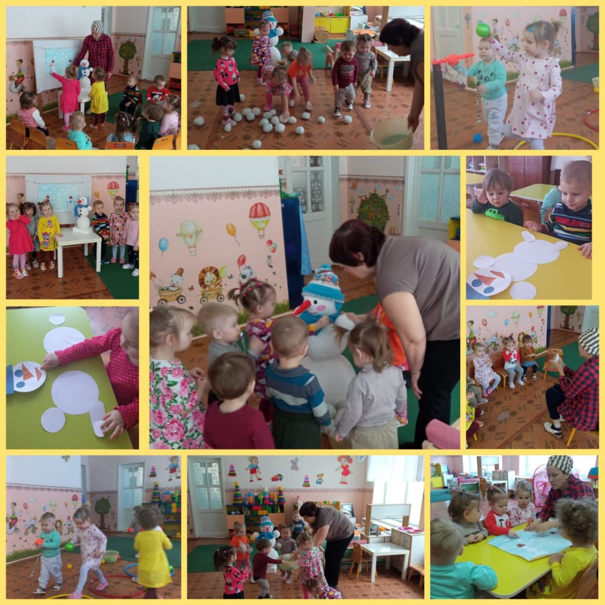 Так как на улице морозно, и наши дошколята ещё малы и не всегда могут погулять на участке, к нам в гости пожаловал Снеговик, который рассказал детям о зимних играх и забавах, и поиграл с малышами. А они на волшебном столе сложили из белых кружочков бумаги Снеговика, чем очень порадовали гостя.