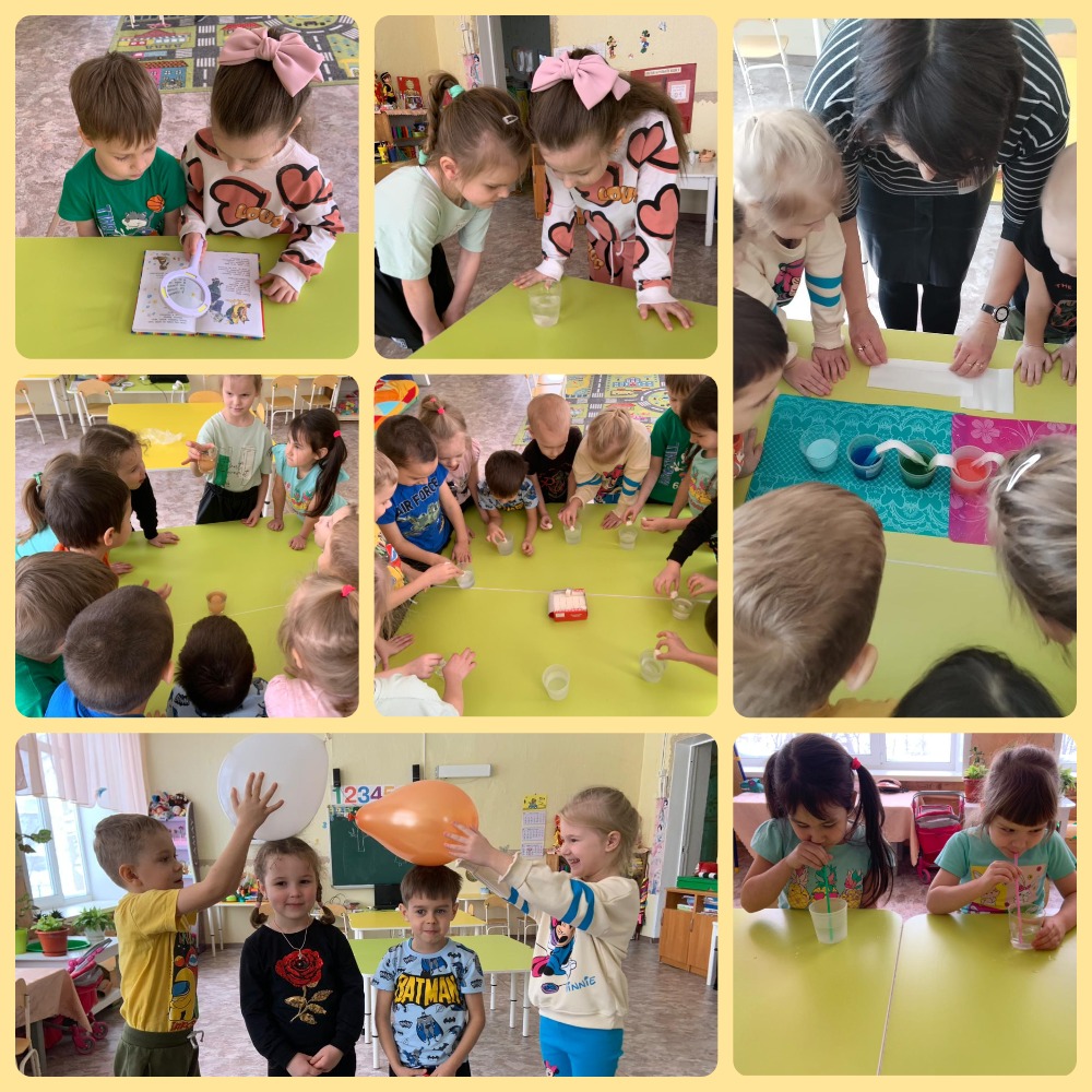В этот день дети проводили различные опыты и эксперименты. В ходе эксперимента «Двигающаяся вода» дети узнали, что вода с помощью салфетки может перетекать из одного стакана в другой, а также наглядно увидели принцип смешивания воды разных цветов. Эксперимент «Упрямые шарики», «Чудо прическа» познакомили детей с проявлением статистического электричества и возможностью снятия его с предметов, а также выявить взаимодействие двух наэлектризованных предметов.