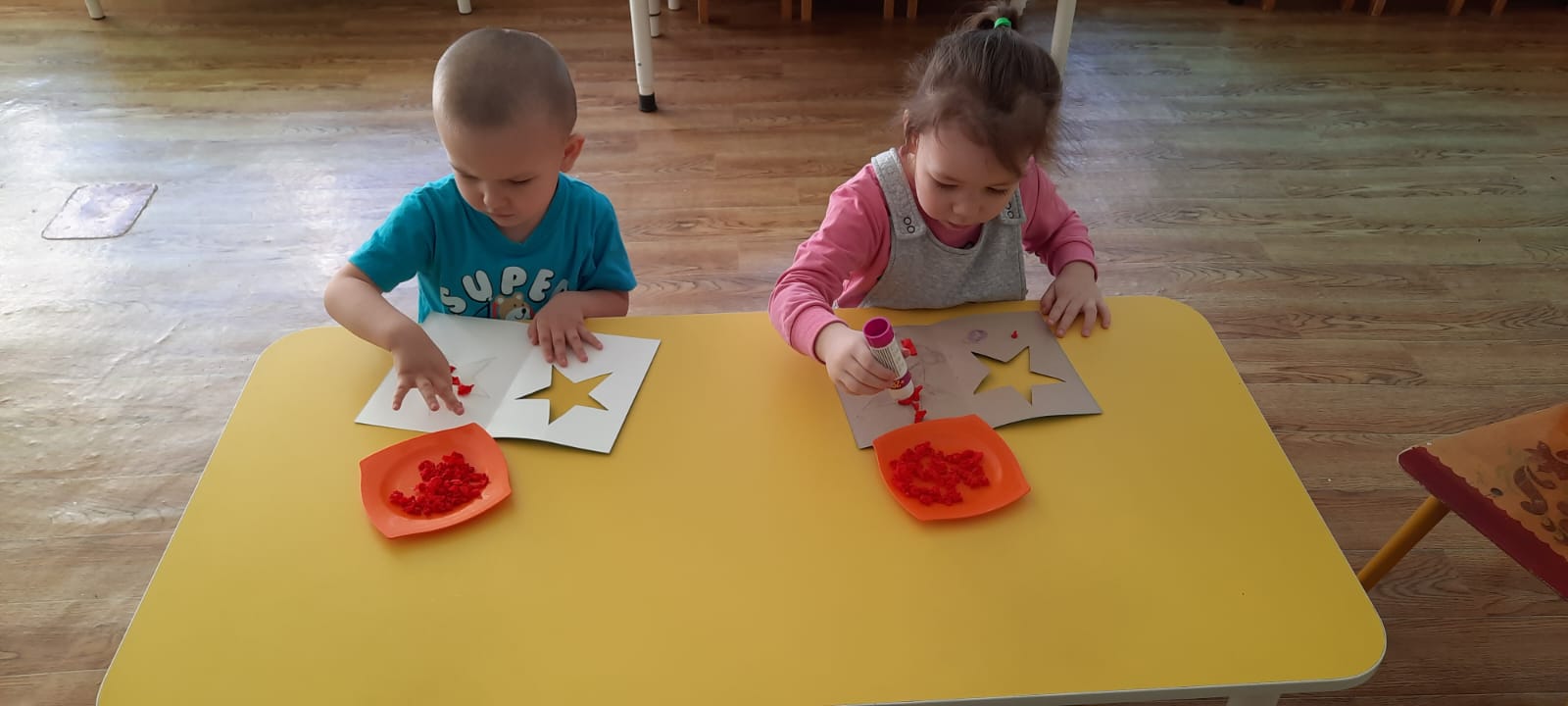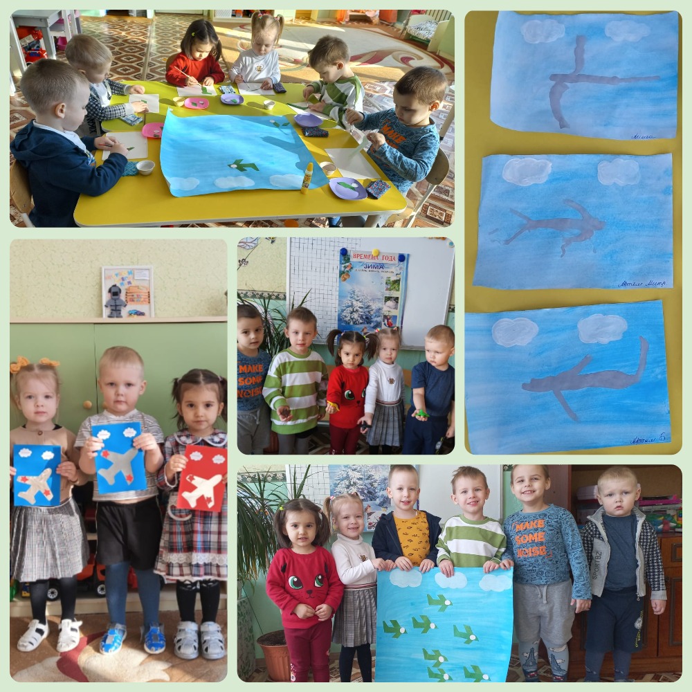 Ежегодно в детском саду, в каждой группе проходит тематическая неделя, посвящённая предстоящему празднику «День защитника Отечества». В течение всей недели ребята группы "Пчёлки" рисовали рисунки, лепили из пластилина поделки по данной тематике. С большим интересом воспитанники с помощью воспитателей изготавливали из разного материала подарки для любимых пап, дедушек. В этот раз дети сделали открытку с самолётами.