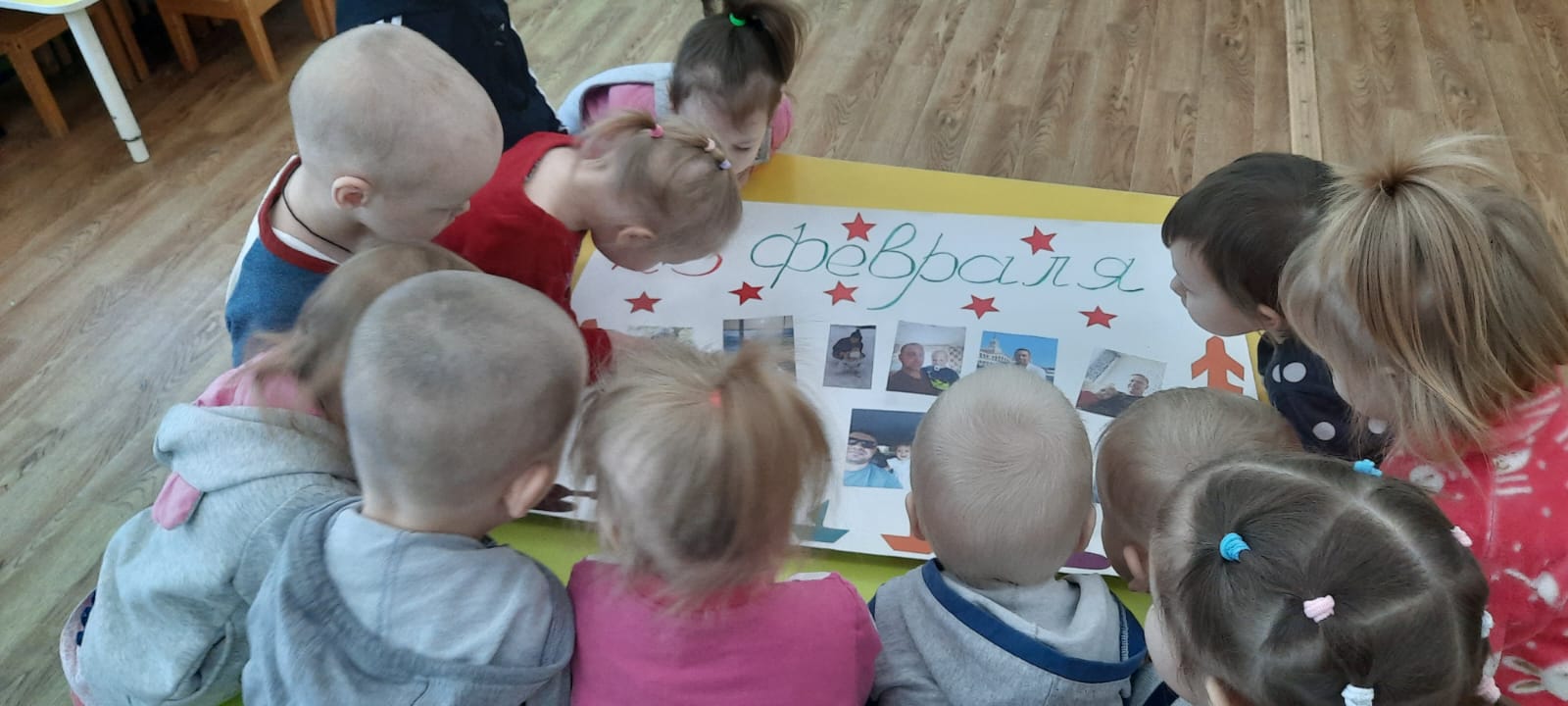 Традиционно в детском саду проходит тематическая неделя, посвящённая Дню защитника Отечества. В течение этого времени проводятся различные мероприятия: беседы, просмотр видео-презентаций, рассматривание иллюстраций по теме, чтение художественной литературы, отгадывание загадок о военной технике, знакомство с военными профессиями, занятия по изодеятельности по данной тематике. С большой радостью дети с помощью воспитателей изготавливают подарочные открытки для любимых пап и дедушек. Совместно с родителями в группах оформляют фотовыставки «Наши отважные папы».