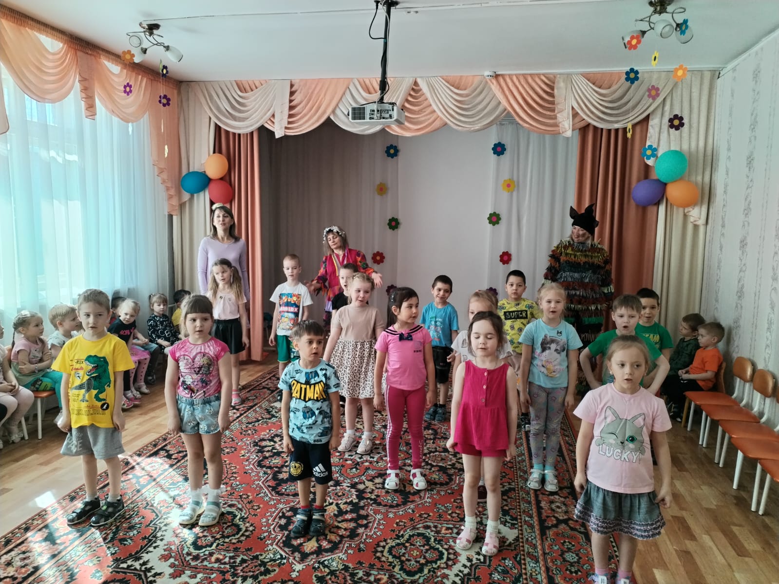 Дети порадовали зрителей яркими танцами и песнями под руководством музыкального руководителя Шарагиной Н.В. А благодарные зрители не жалели бурных аплодисментов. На протяжении всего праздника звучала веселая музыка, царило праздничное настроение.