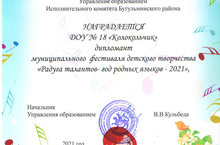 Воспитанники нашего детского сада стали дипломантами в муниципальном фестивале детского творчества "Радуга талантов - год родных языков - 2021". Поздравляем!