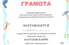 Воспитанник нашего детского сада Фаттахов Карим стал лауреатом муниципального конкурса "Мир в радуге профессий" в номинации "Лучший спортивный проект"