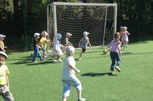 Сегодня в чудесный летний день дети старшей и подготовительной групп ходили на стадион школы №11: позанимались на снарядах, покатались на качелях, поиграли в футбол. Весело и незаметно пролетело время.