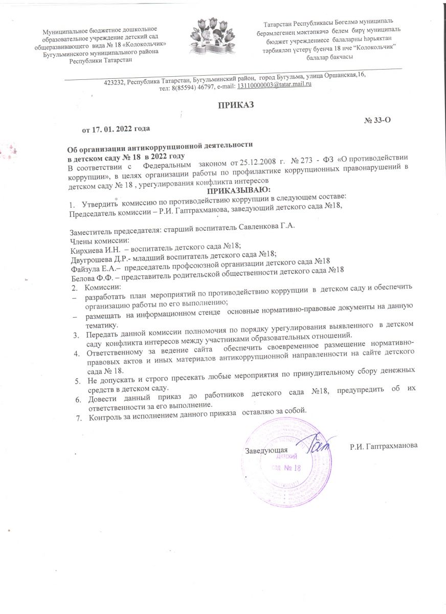 Муниципальное бюджетное дошкольное образовательное учреждение детский сад общеразвивающего вида №18 «Колокольчик» Бугульминского муниципального района Республики Татарстан/ Татарстан Республикасы Бөгелмә муниципаль берәмлеге мәктәпкәчә белем бирү муниципаль бюджет учреждениесенең балаларны һәрьяктан тәрбияләп үстерү буенча бер яисә берничә өстенлекле юнәлештәге 18 нче “Колокольчик” балалар бакчасы