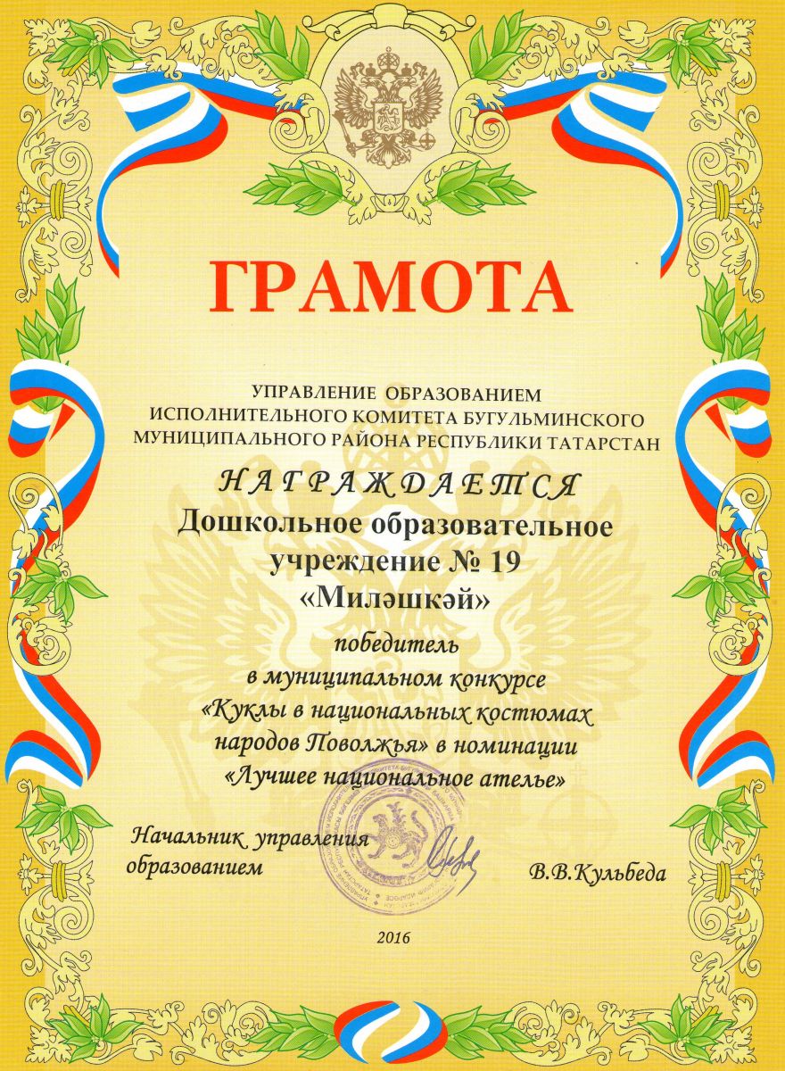 Муниципальное бюджетное дошкольное образовательное учреждение детский сад № 19 «Милэшкэй» Бугульминского муниципального района Республики Татарстан/Татарстан Республикасы Бөгелмә муниципаль районы мәктәпкәчә тәрбия hәм белем бирү муниципаль бюджет учреждениесе “Миләшкәй” 19 нчы балалар бакчасы