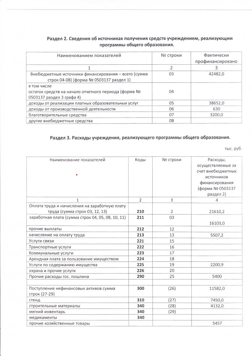 Сведения об источниках получения средств учреждением, реализующим программы общего образования